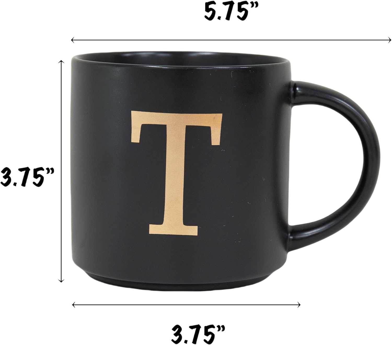 COLLECTIVE HOME - Monogram Ceramic Mugs, 15 oz Golden Initial Black Coffee Cups, Elegant Alphabet Tea Mugs, Elegant Personalized Mug with Gift Box, Unique Mug with Double Side Capital Lette (T)