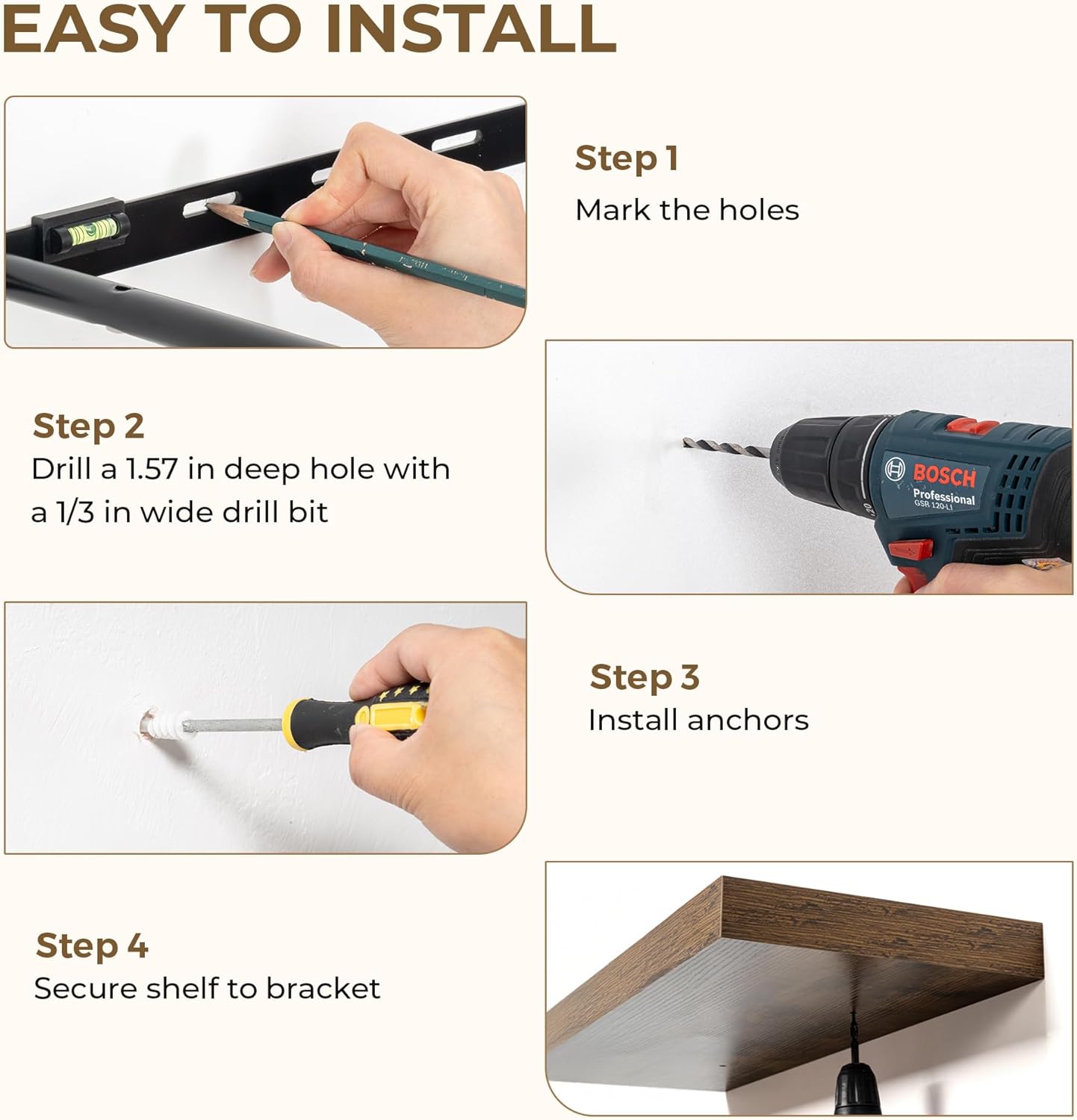 - Easy to Install: Our long wall shelf can be easily installed in minutes with the installation manual.Convenient to wipe and easy to maintain.This deep floating shelves for wall is also an ideal gift for family and friends.