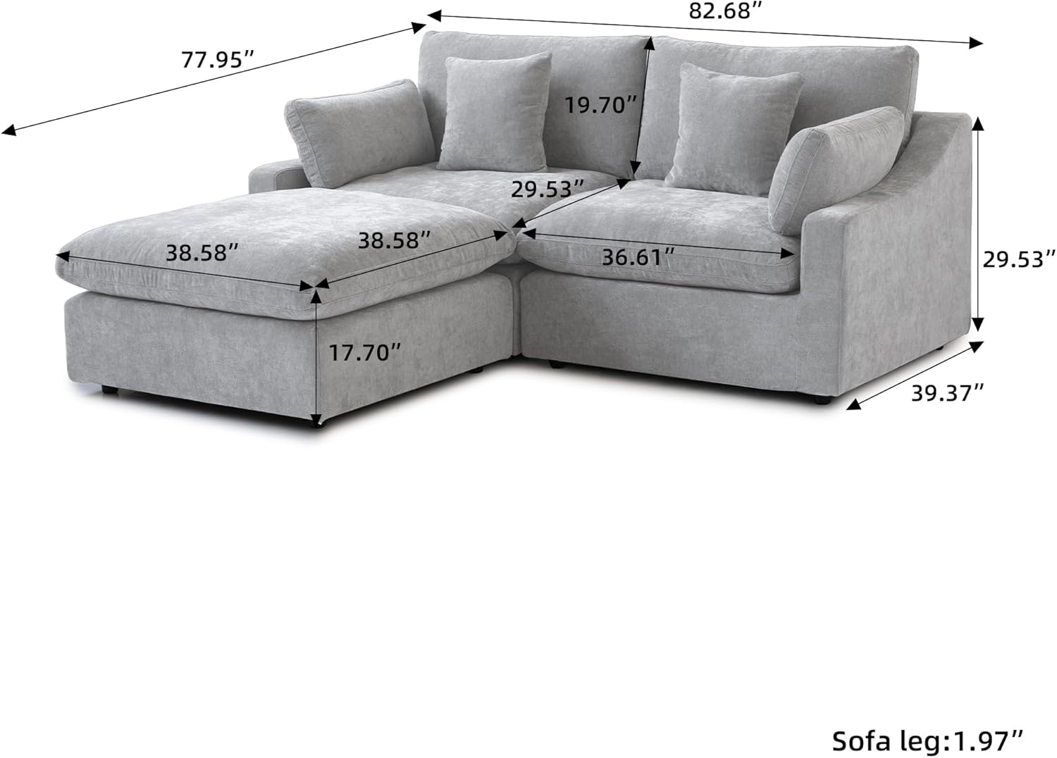 - ⛅[Size Information] Overall Size: 82.68"L x 77.95"W x 29.53"H. The cushion cover, backrest cover, and frame cover of the sofa can all be removeable and washable. You can easily keep the sofa clean.