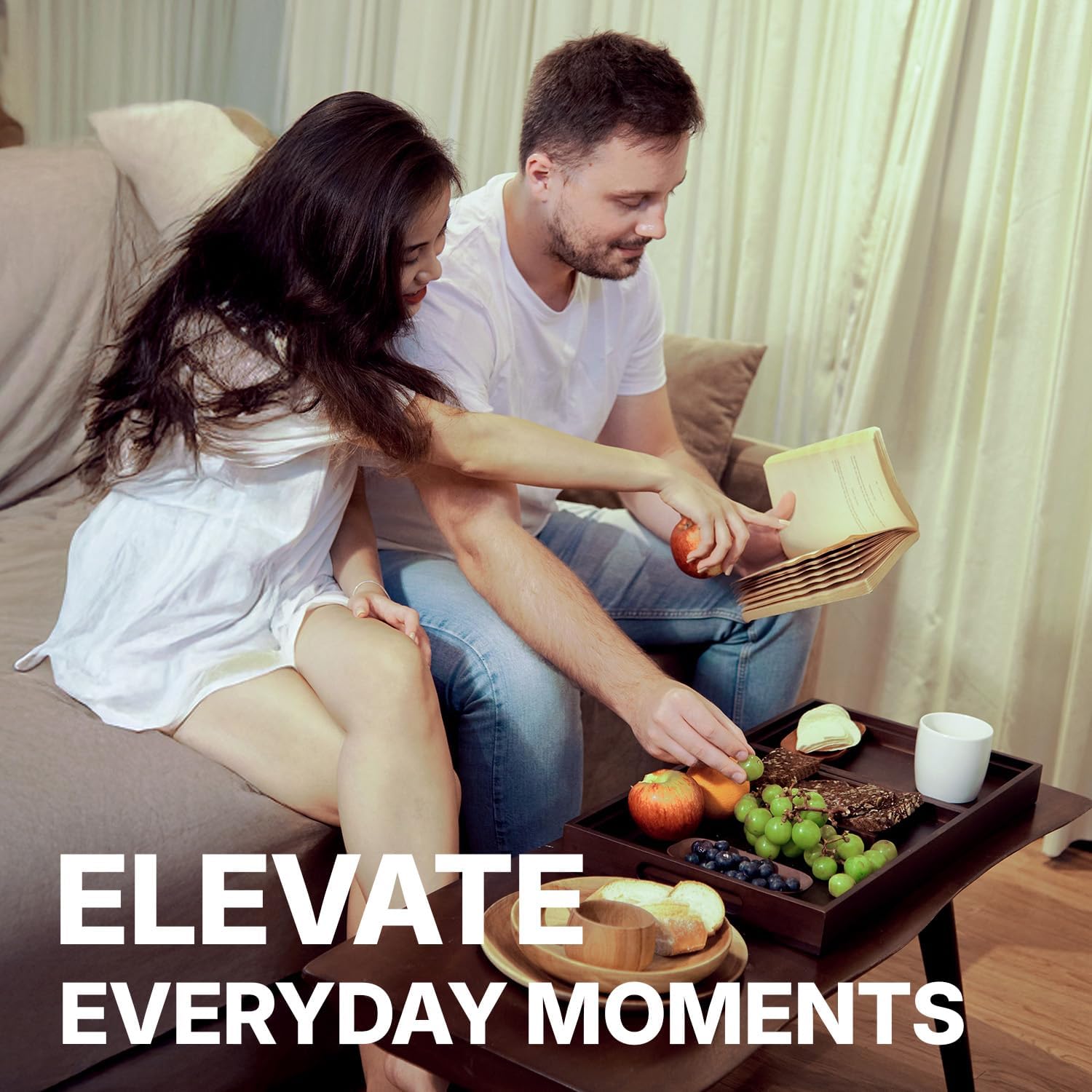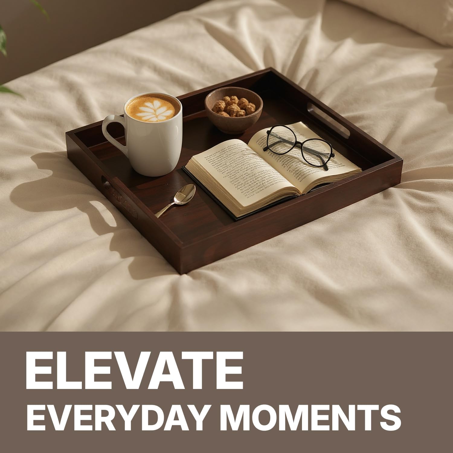 - [METICULOUSLY REFINED]: Our wooden serving tray is hand-finished through over 10,000 micro-sanding strokes—leaving the surface irresistibly soft, almost mental-like to the touch. Perfect as a wooden decorative tray, rectangle tray, or coffee tray for tray decor, it elevates food trays for eating, bed food trays for adults, serving platters and trays for parties, or party serving trays and platters.