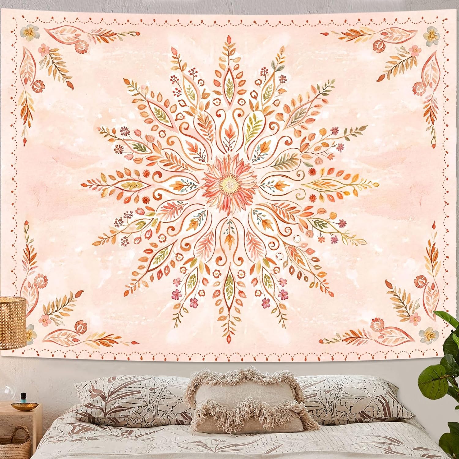 Lunerfex Floral Mandala Tapestry Boho Tapestry for Bedroom Orange Tapestries Wall Hanging Living Room Wall Art and Home Decor 70x90
