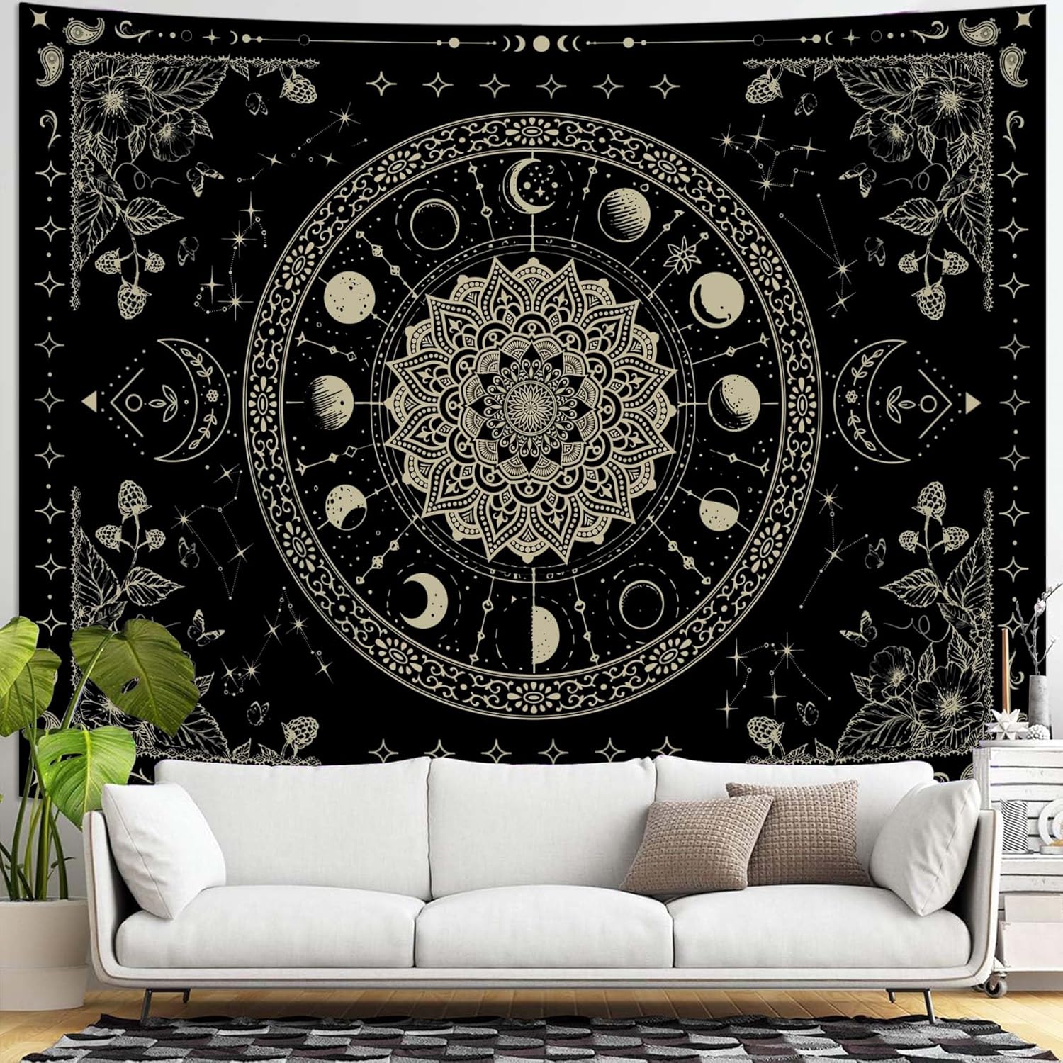 Lunerfex Mandala Moon Tapestry Boho Tapestry for Bedroom Black Tapestries Wall Hanging Living Room Wall Art and Home Decor 60x80