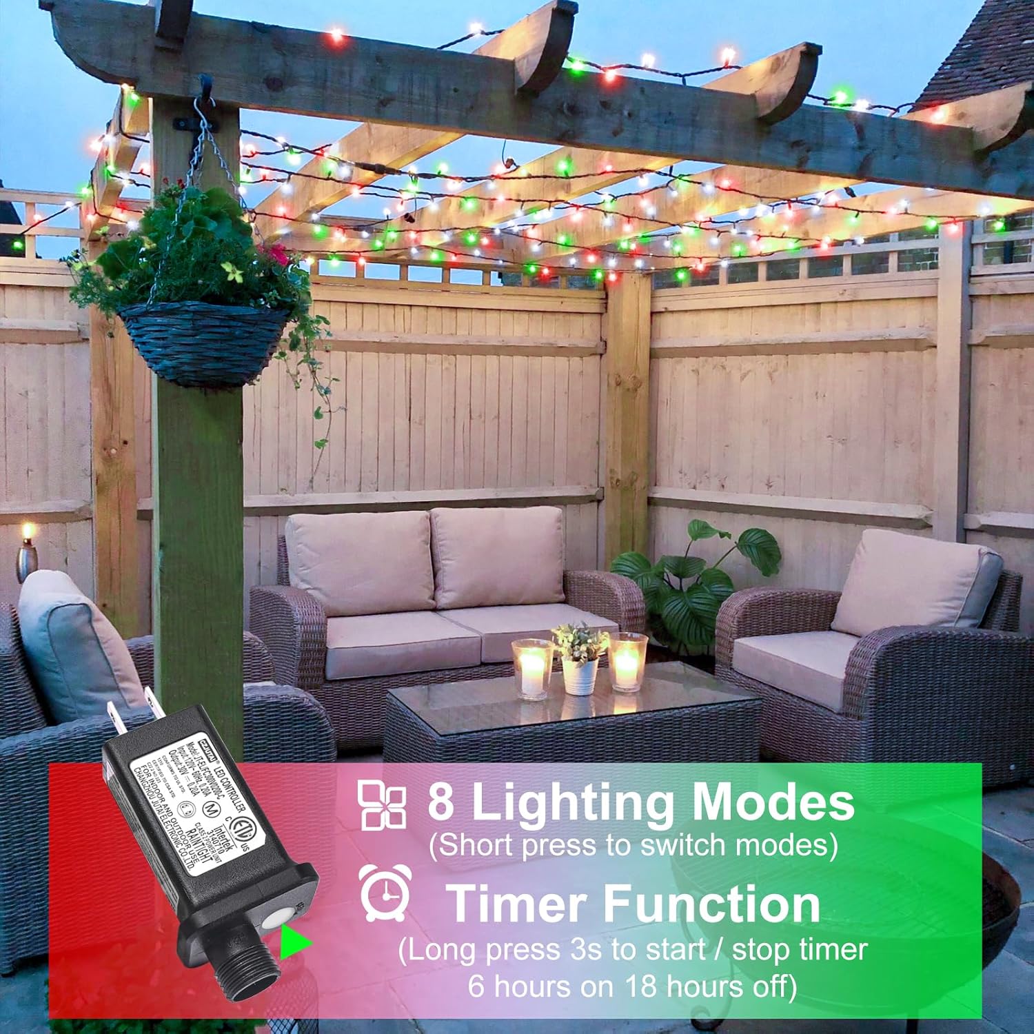 - Ideal for Christmas Decorations: The IP65 waterproof Christmas lights outdoor can withstand all kinds of weather, ideal for year-round use. These Christmas tree lights are fabulous decorations for your garden, bistro, balcony, terrace, pergola, gazebo, tent, pool umbrella, cafe, bedroom or other occasions. But please note that plug not waterproof.