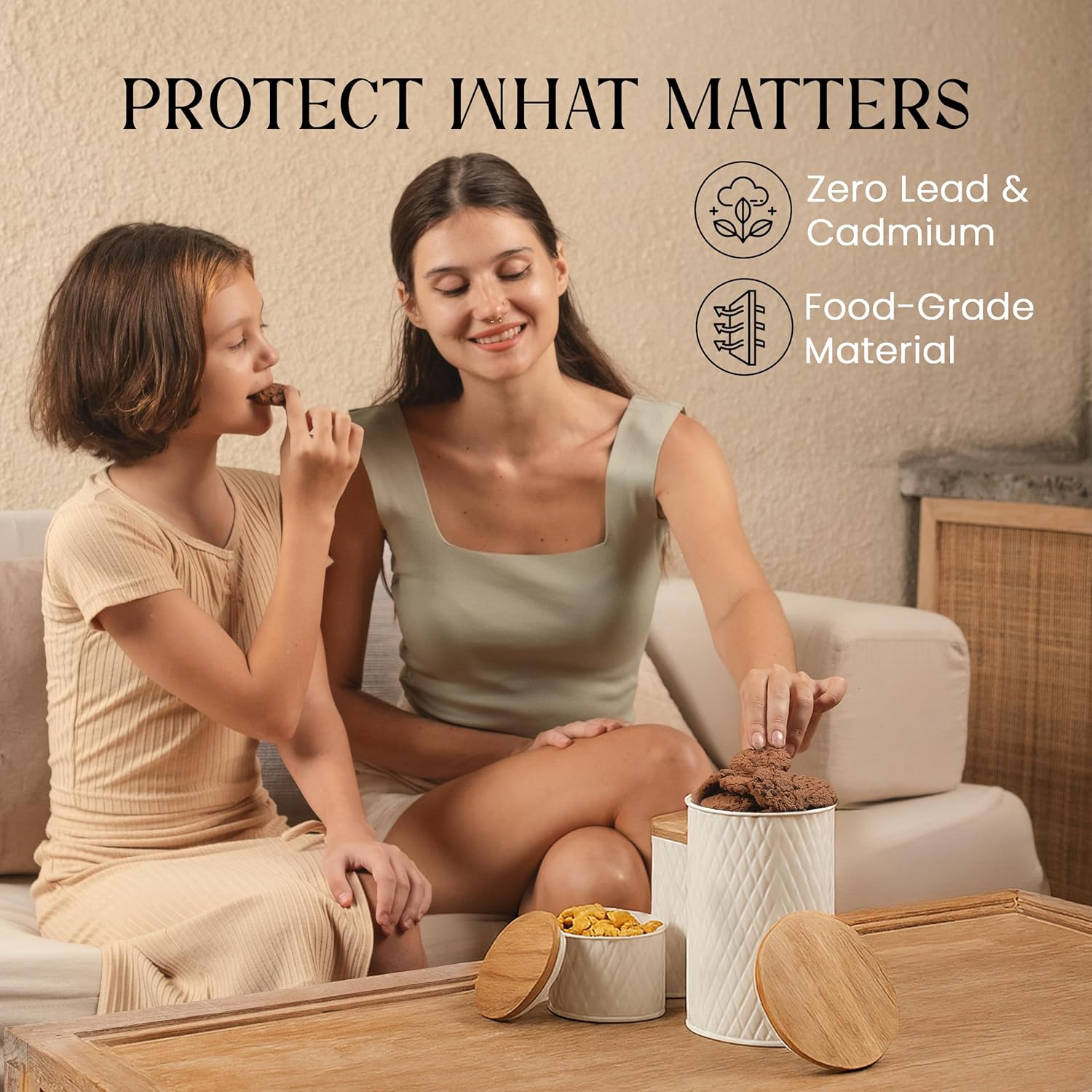 - Beauty Is in the Details – Elevate your style as you reduce stress. Your kitchen canister set delivers high-end quality with black galvanized metal and sleek acacia wood to complement any aesthetic.