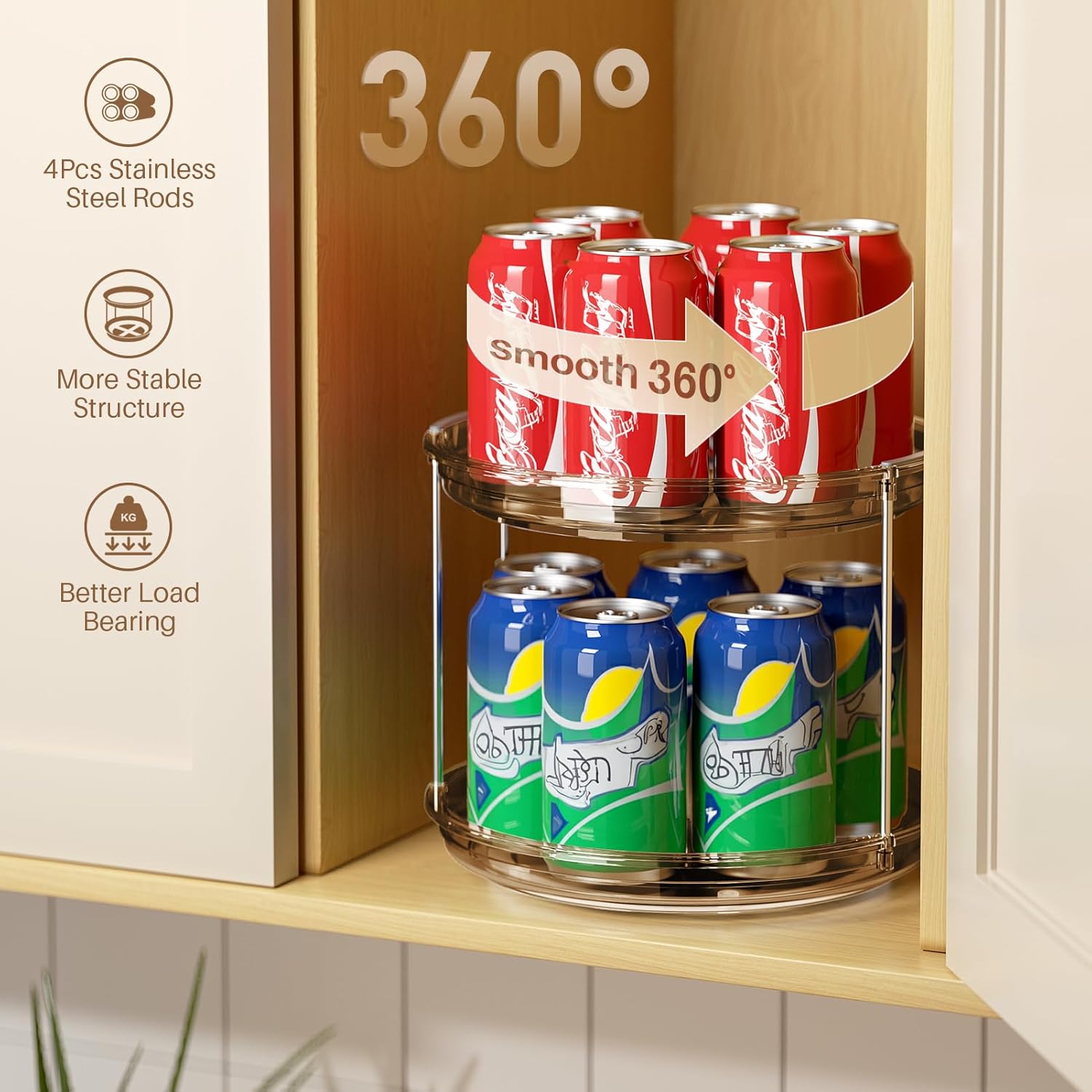 - VERSATILE STACKABLE DESIGN: Customize your space by stacking these units into a 3-tier amber Lazy Susan organizer when you buy 2 Sets — well-suited for kitchen cabinet organizer spices or seasoning, cans, beverages, medicine, bathroom counter organizer makeup, perfume, and more