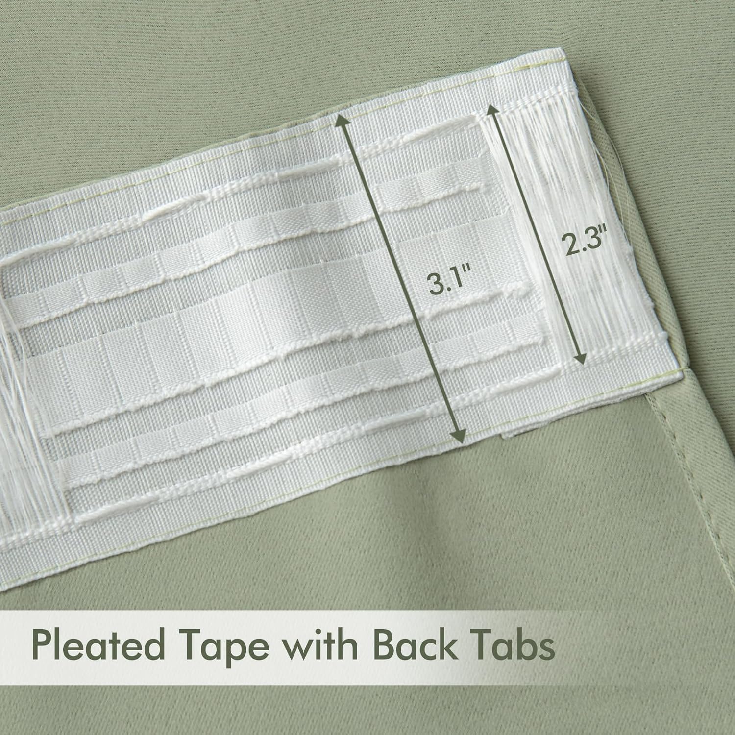 MIULEE Sage Green Back Tab Blackout Curtains 63 Inch Length 2 Panels Set for Living Room Bedroom Privacy, Rod Pocket/Pinch Pleat Thermal Insulated Room Darkening Pleated Light Blocking Drapes