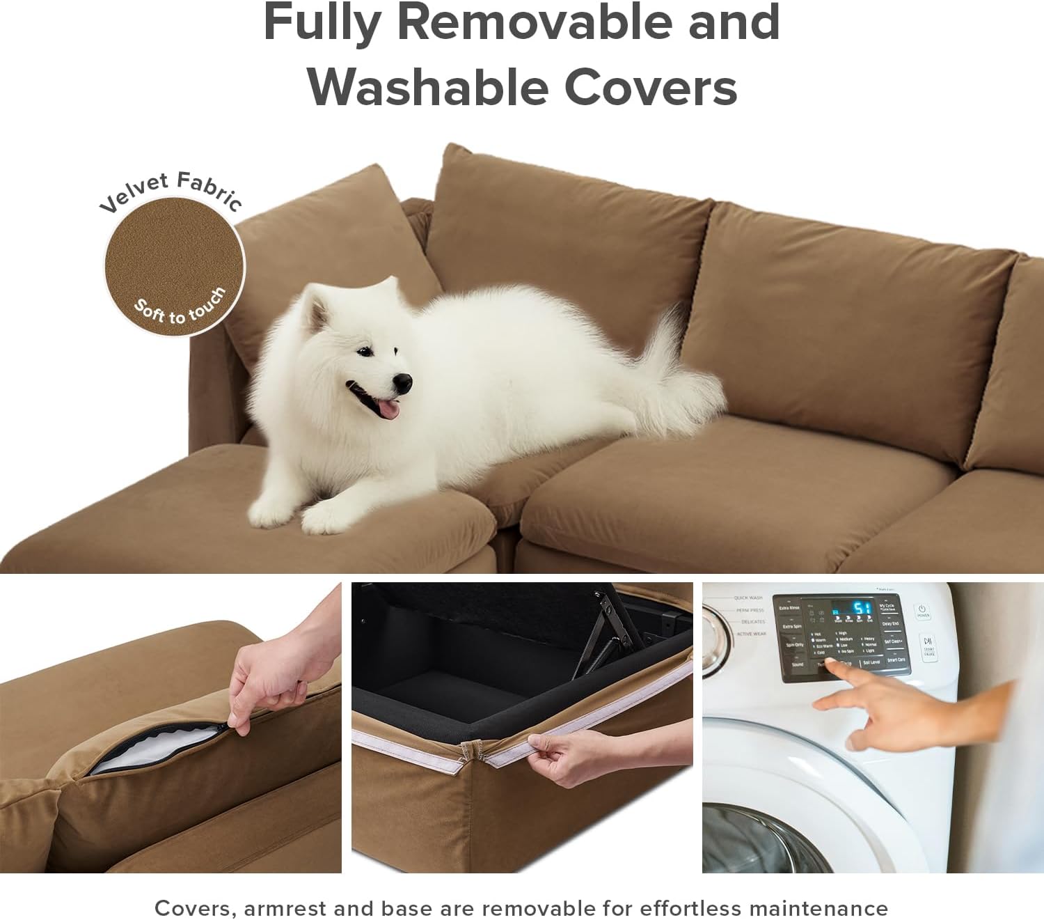 - Fully Removable & Washable Covers for Easy Care: Designed to keep up with real life, all covers, including the armrests and base, are fully removable and machine washable. Whether you’ve got kids, pets, or just the occasional spill, this sofa is easy to keep fresh and clean