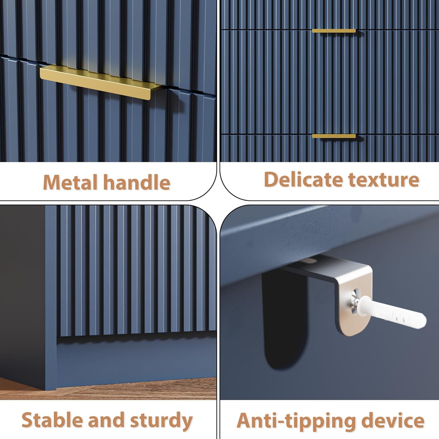 - Safety & Stability: Our fluted dresser features a dual anti-slip design, ensuring drawers stay securely in place, while anti-tipping straps provide added stability. The reinforced base and smooth damping system enhance structural integrity, offering reliable support for everyday storage needs.