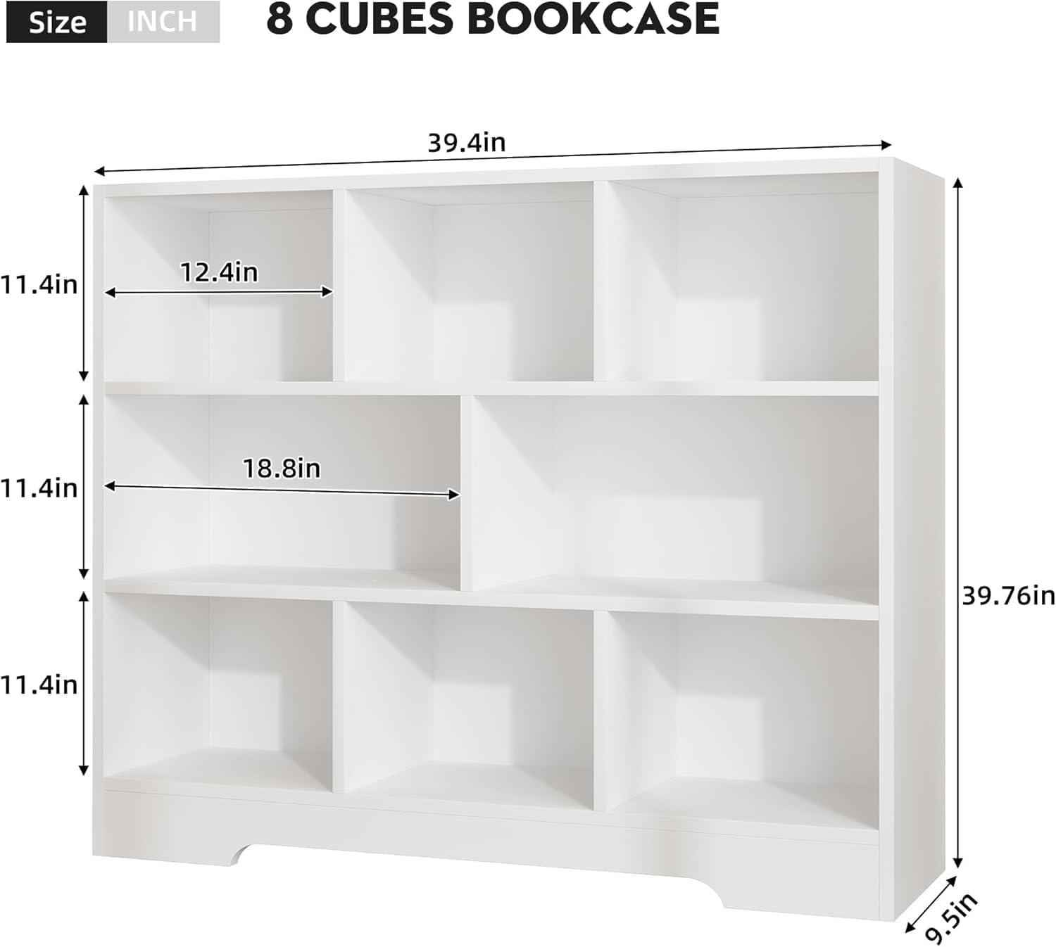 - 【Durable Bookshelf】Overall dimensions: 39.4”L x 9.4”W x 39.8”H. This Cube Storage Organizer is crafted from MDF board, which is durable and sturdy. The thick bottom base is designed to strengthen the stability.