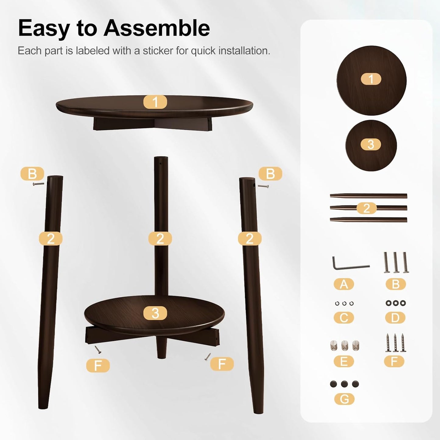 - 【Quick Assembly & Excellent Support】Assemble your round bedside table in just 10 minutes! Comes with clear instructions and an online video guide for hassle-free setup. Plus, enjoy 24/7 after-sales support—any missing parts will be replaced without the need for returns, ensuring a worry-free experience.