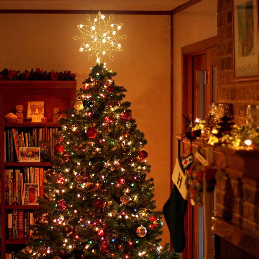 - ๐ Perfect Christmas Gift --- These tree toppers are crafted from durable steel, providing you with season after season of inspiring holiday beauty. Light up your Christmas tree in starry style with pre-lit tree topper. Ideal Christmas gift for your family, friends, colleagues, neighbors...