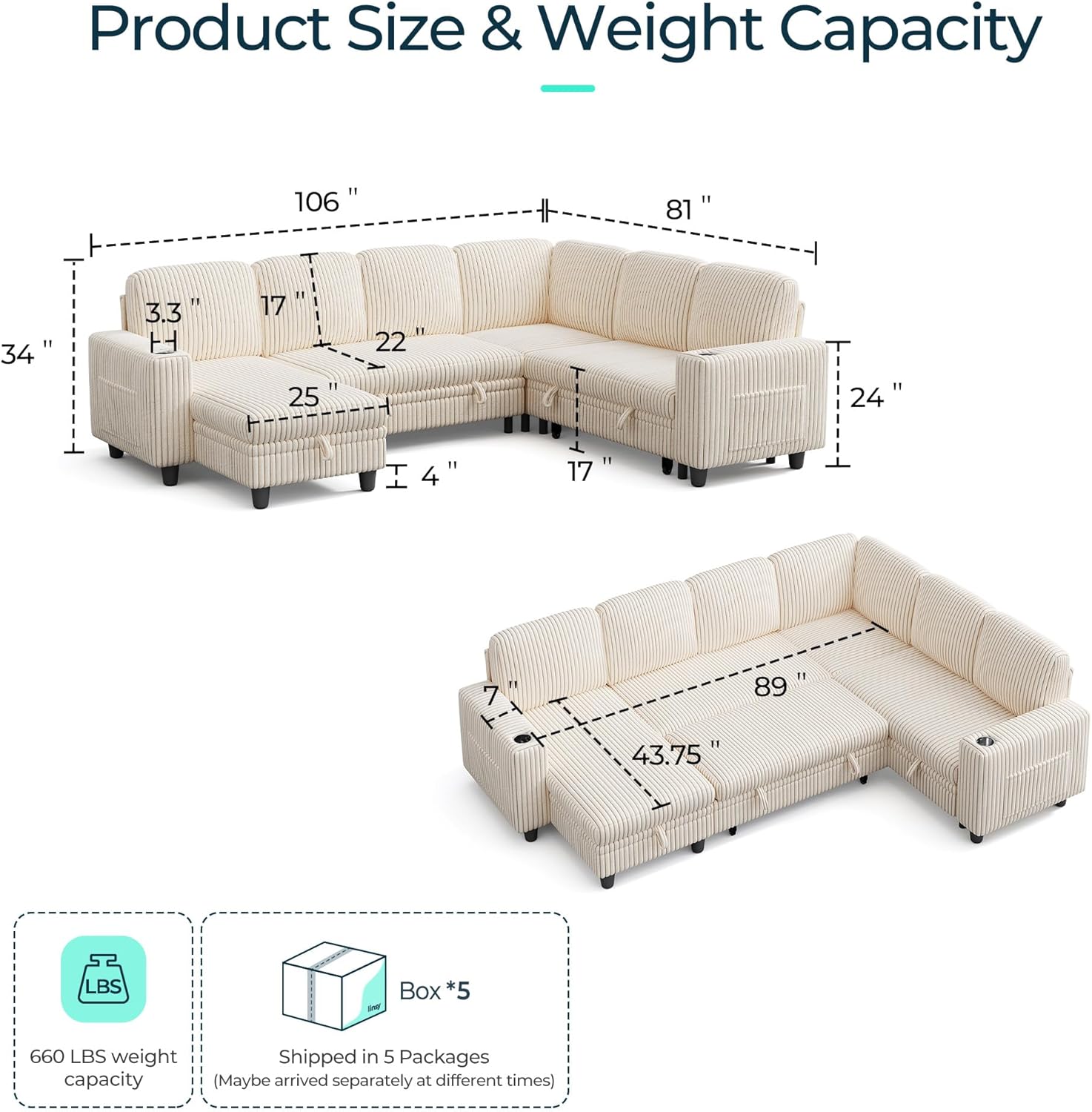 - Modular Sectional Sofa with Storage: LINSY HOME modular sectional sofa can be customized to fit your space needs with your sofa bed combinations, offering unlimited combination options. Our sofa beds are equipped with storage space for you to organize your space, you can store blankets, pillows, toys, miscellaneous items, etc., and store your daily items in a hidden place