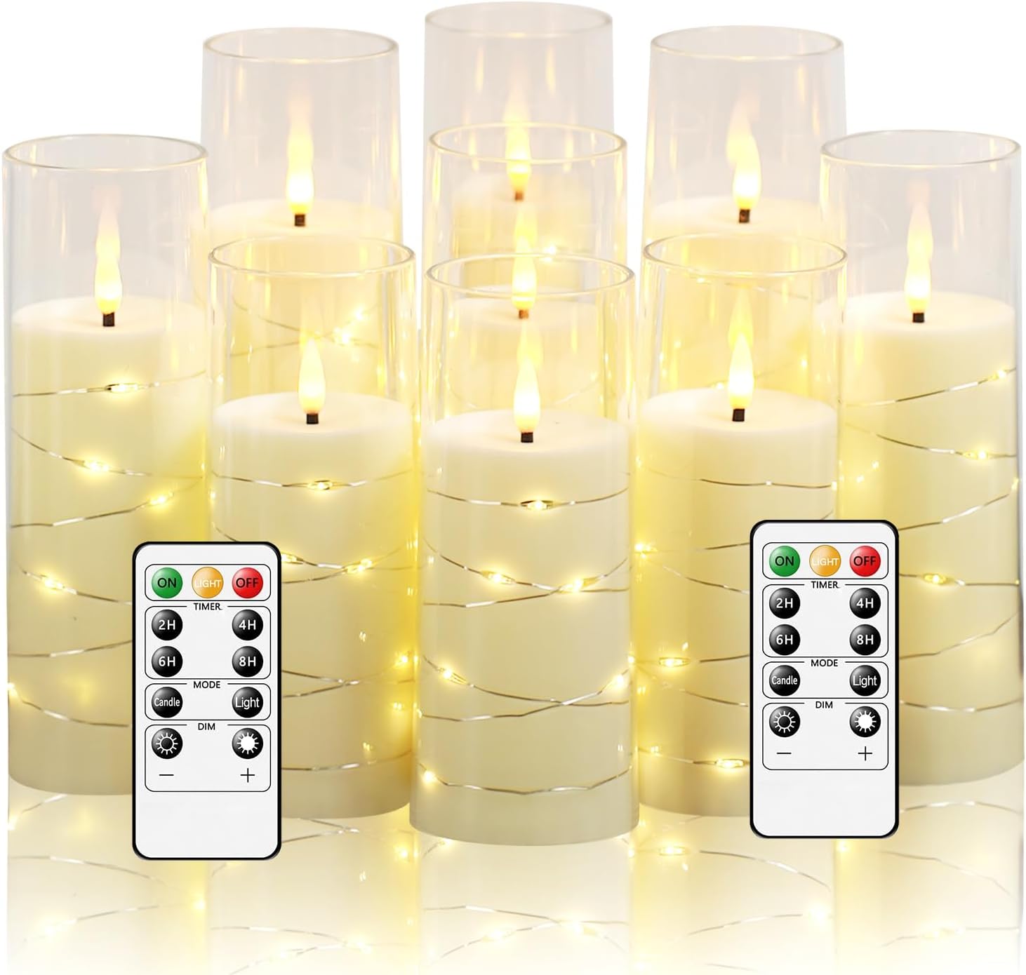 Flickering Flameless LED Candles,Battery Operated Candles 9 Pcs with Embedded Star String,Acrylic LED Pillar Candles with Remote,Suitable for Home Decoration to Create an Atmosphere (Ivory)