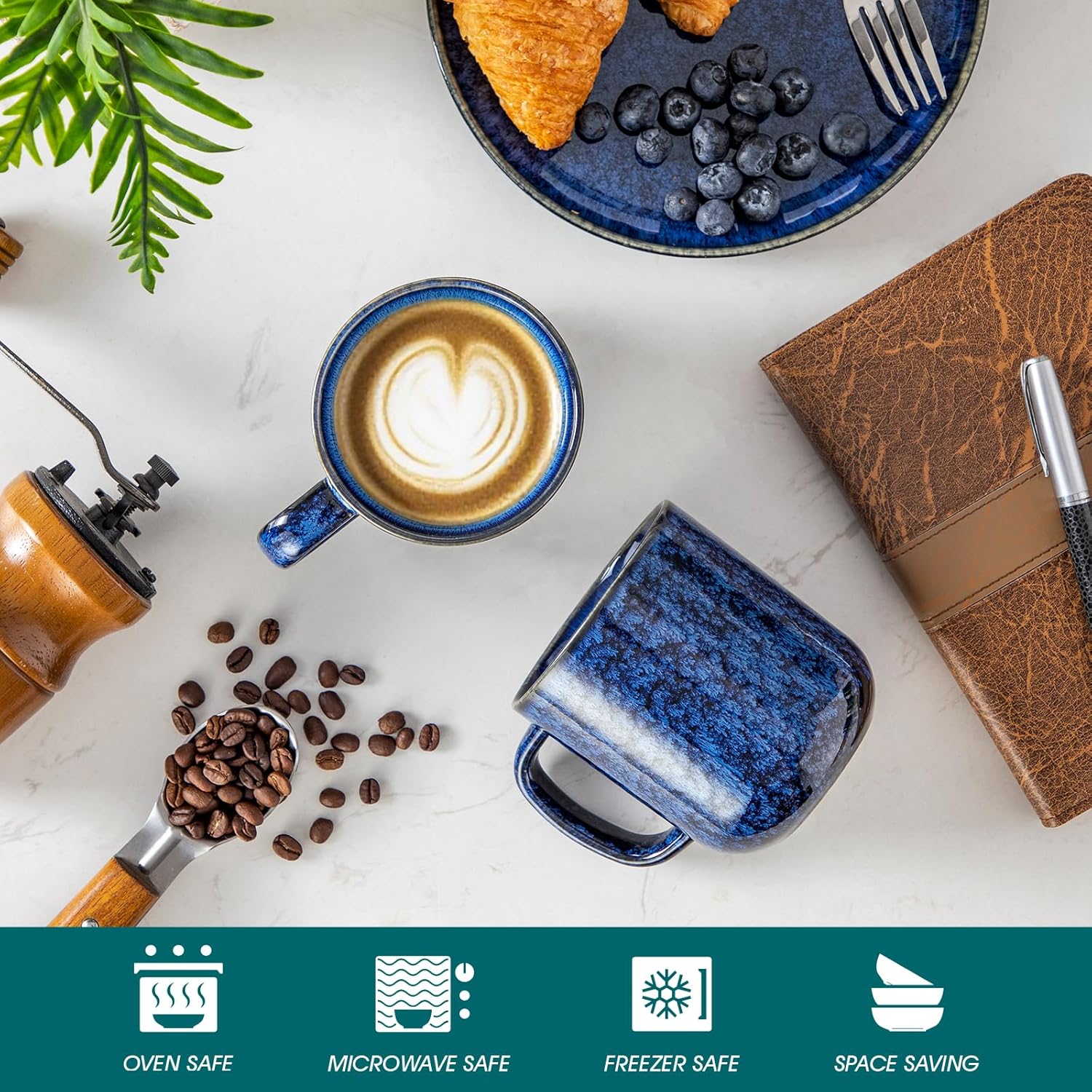 - 【Dishwasher-Safe & Durable】: Fired at 2372°F+ for a fully fused, non-porous glaze (vs. standard 1832°F), this coffee mugs set of 6 resists high-pressure water and heat. The low-absorption ceramic body (<0.3%) prevents detergent residue buildup, ensuring easy cleaning and long-lasting use.