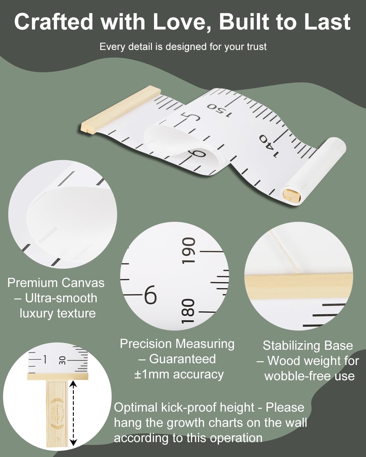 - โจEasy-to-Use & Durable Marker โ Easily record your child's height measurements using the included marker on our portable growth chart, creating lasting milestones from toddler to teen years. A baby essential that turns every kid's height tracker moment into a celebration!