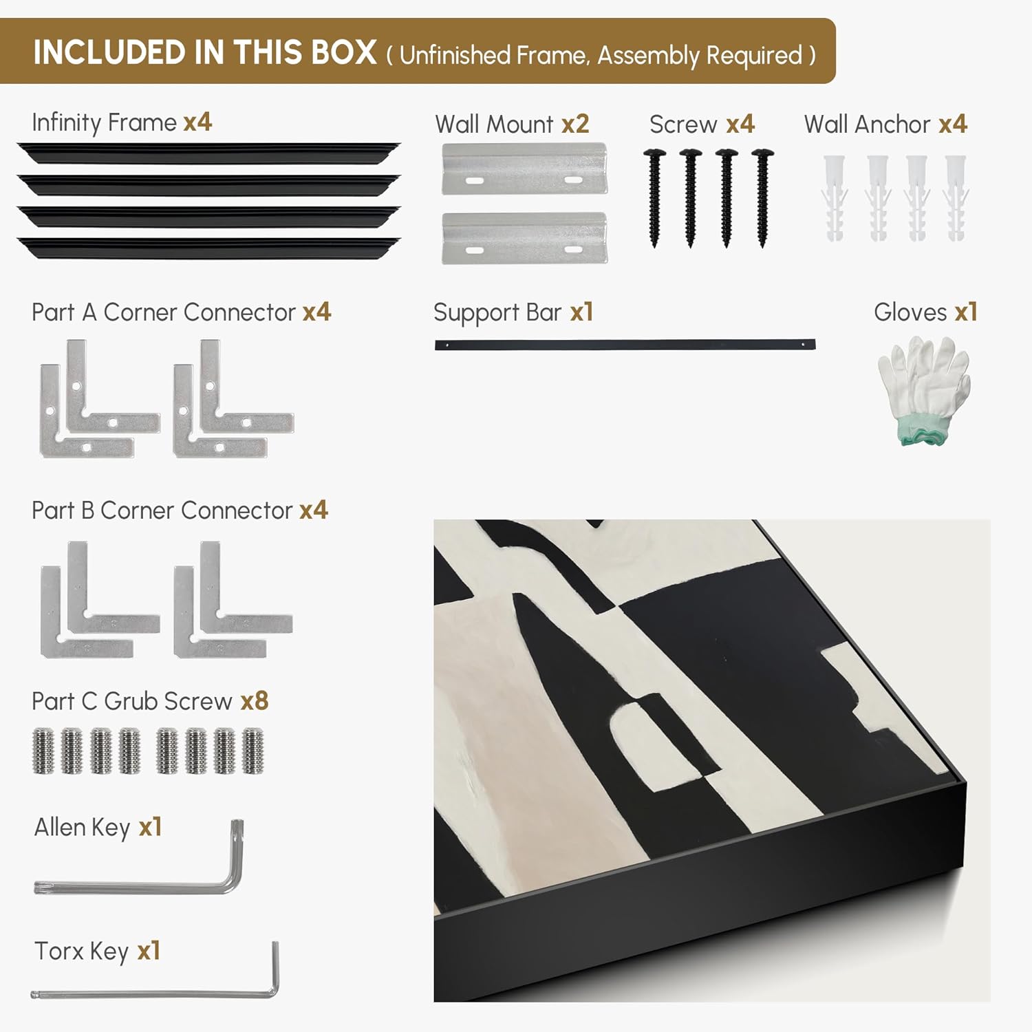 - Assembly Required: The artwork comes with the frame components unassembled. Don¡¯t worry ¡ª setup is straightforward and tool-friendly. For best results and accurate alignment, we recommend two people to ensure a smooth assembly and a stable, secure wall mount.
