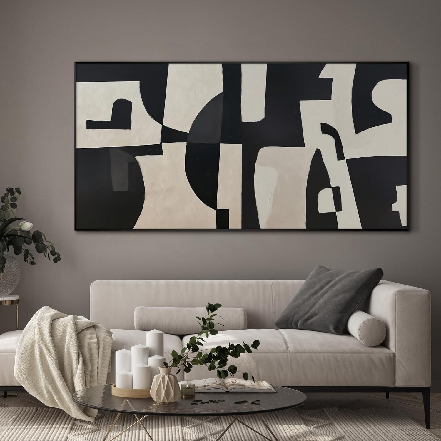 SIGNWIN 36"x72" Extra Large Framed Wall Art Black and White Abstract Geometric Design, Minimalist Modern Print for Home Living Room Bedroom Decor (Frame Assembly Required)