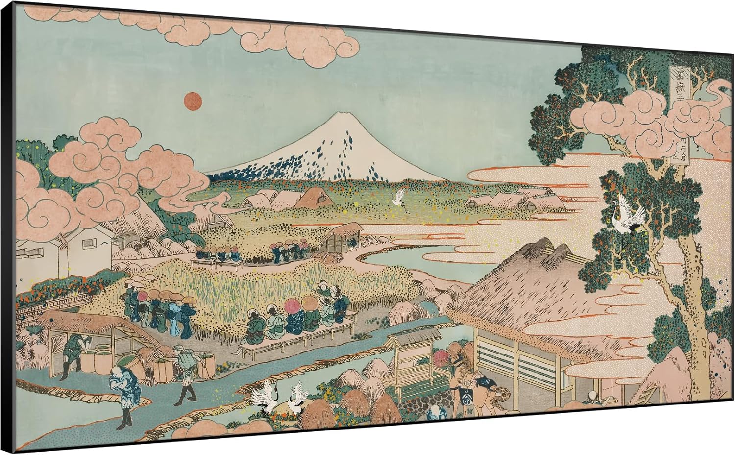 SIGNWIN 24"x46" Extra Large Framed Wall Art Japanese Ukiyo-e Landscape, Timeless Mt. Fuji Scene for Zen-Inspired or Asian-Style Interiors for Home Living Room Bedroom Decor (Frame Assembly Required)