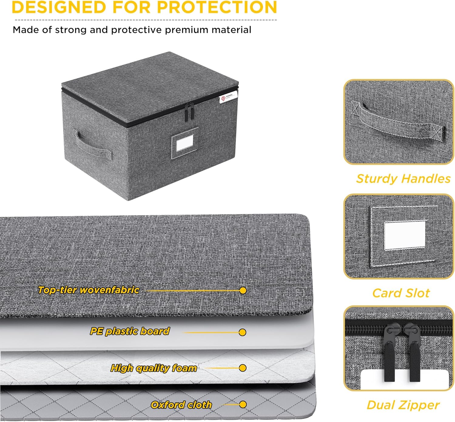 - 【Reinforced Handle and Sturdy Zipper】:Our glassware storage containers boast reinforced handles and sturdy zipper,it won't break when moving or needing to move these storage boxes filled with glasses.