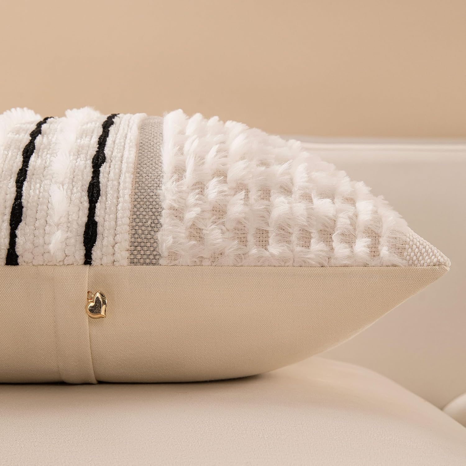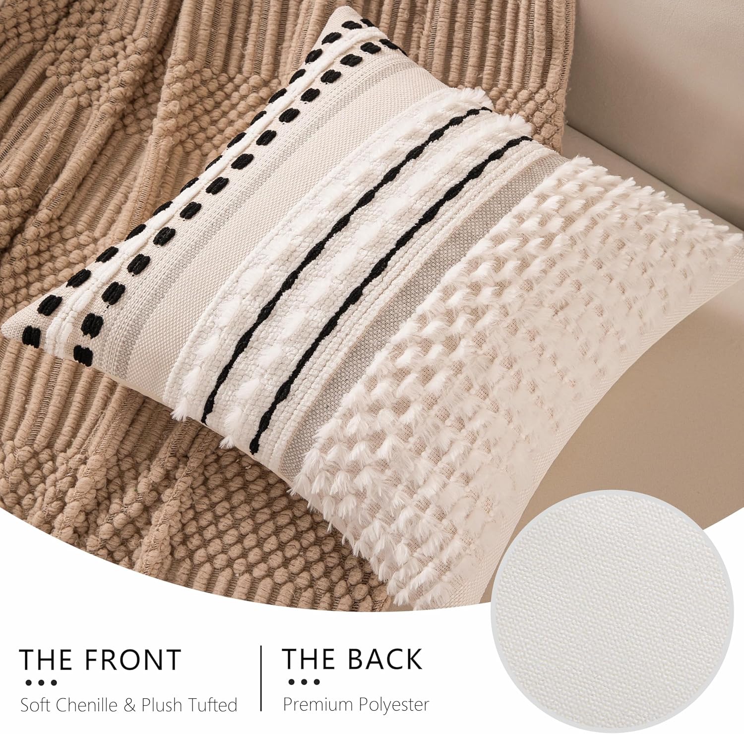 Boho Chenille Tufted Couch Throw Pillow Covers 18x18 Inch Set of 2 Farmhouse Striped Decorative Pillow Covers Accent Neutral Pillowcase Black Cushion Cover for Living Room Sofa Bed