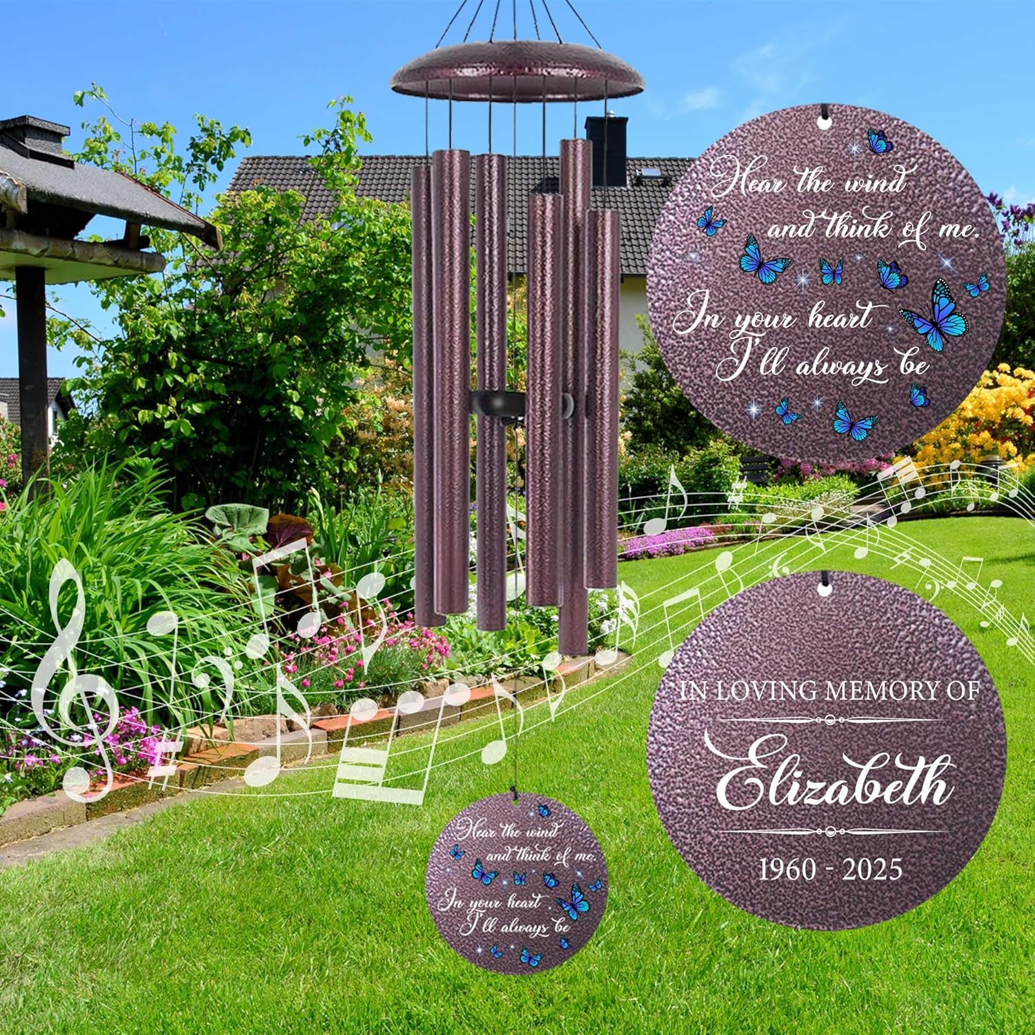 - A BETTER CHOICE THAN FLOWERS: Personalized memorial wind chimes, customized with his/her name and date to keep love in our hearts forever. Our wind chimes are tuned by wind chime experts to crash out beautiful music, a better tribute gift than flowers.
