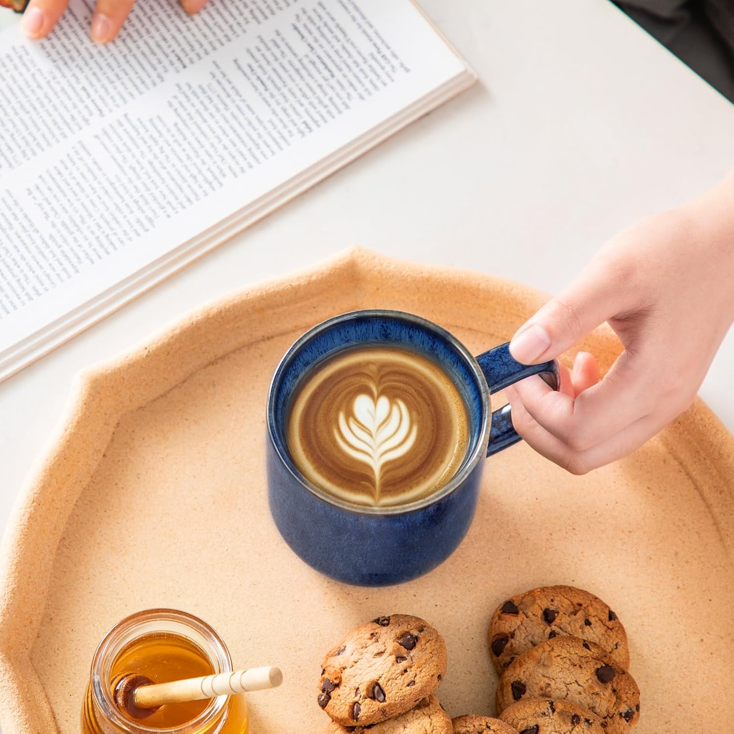 vancasso STARRY Coffee Mugs Set, 12 oz Ceramic Coffee Cups for Latte Hot Tea Cappuccino Cocoa Milk Stoneware Cups Set of 6, Dishwasher & Microwave Safe, Blue
