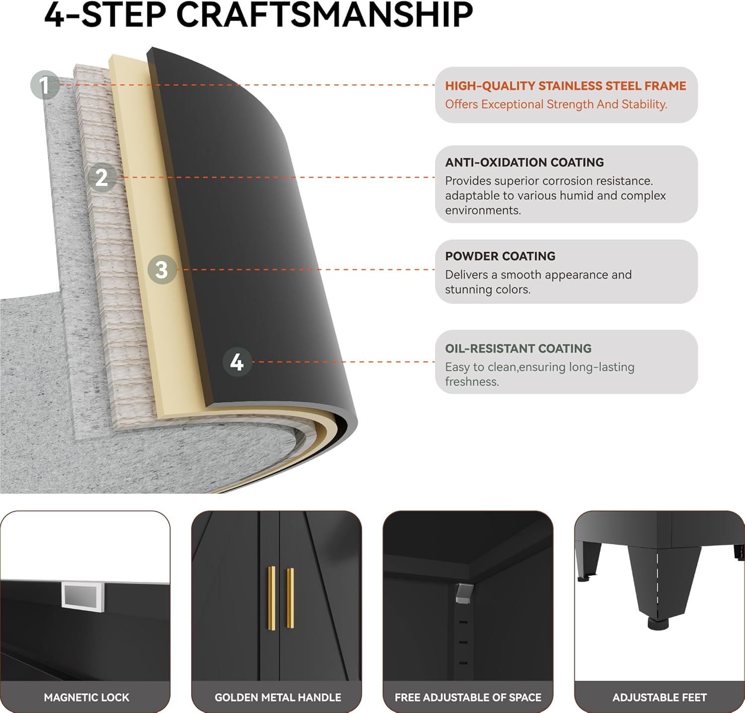 - Material: Made from high-quality cold-rolled steel, ensuring the cabinet is strong and reliable.