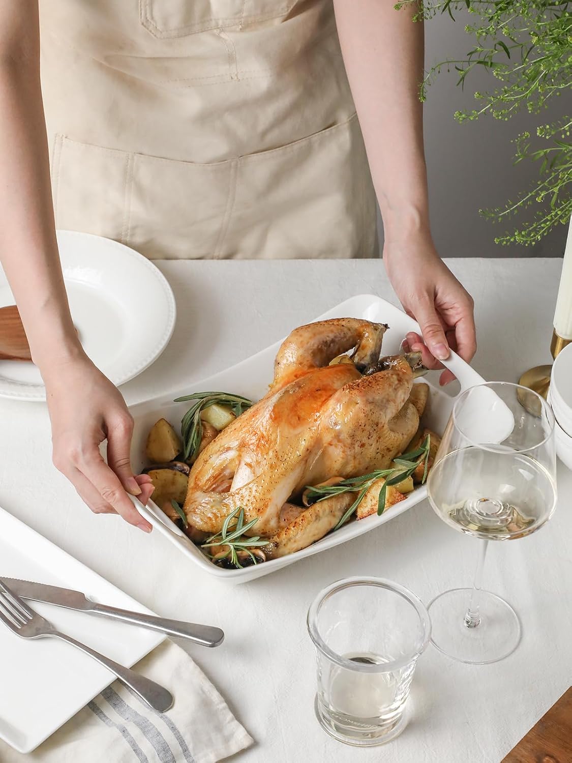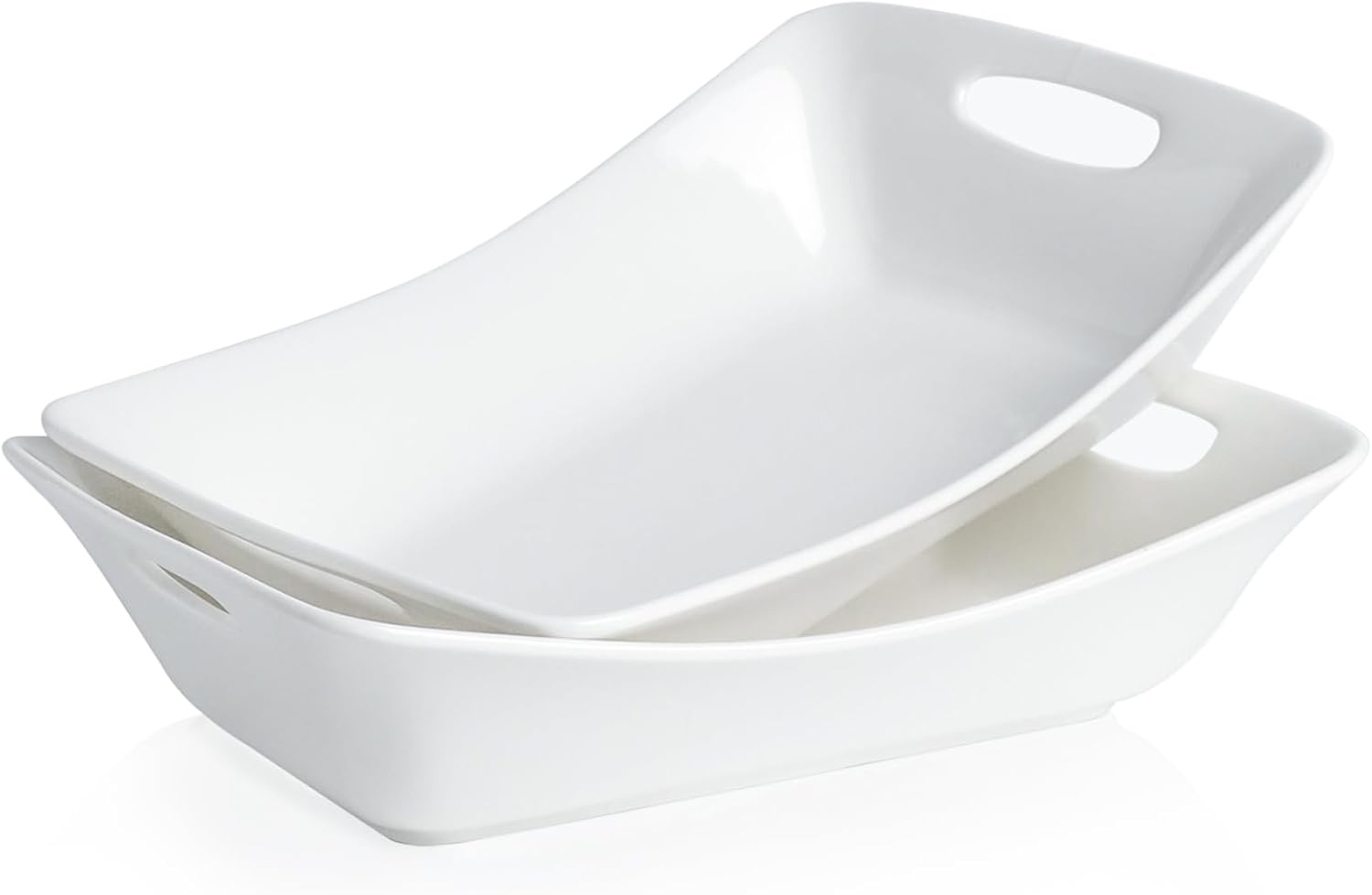 Kanwone Large Serving Bowls with Handles, White Serving Dishes For Entertaining, 1.8 Quarts Porcelain Bowl Set for Turkey, Fruit, Salad, Rectangle Serving Platter for Parites, Thanksgiving, Set of 2