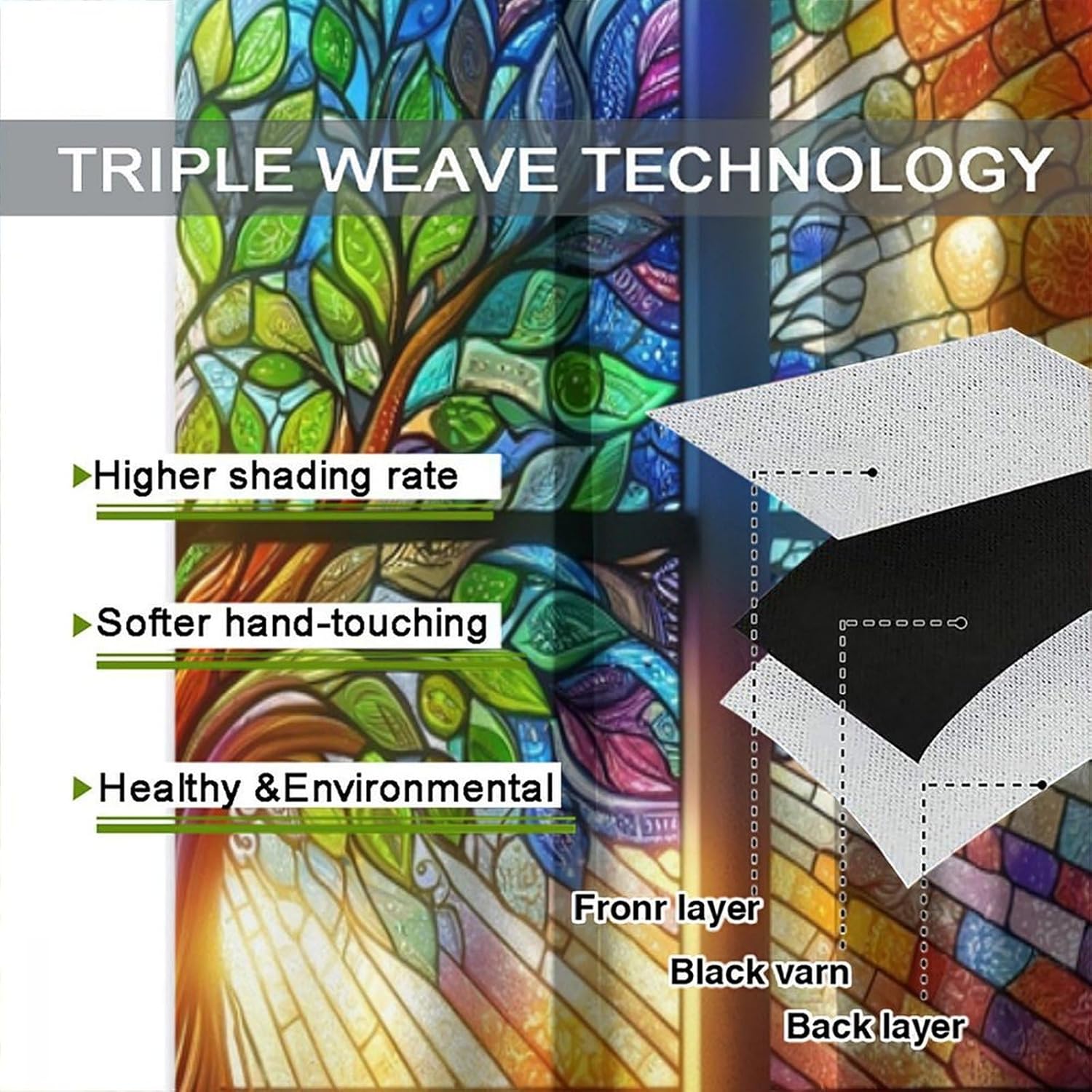 Stained Glass Curtains,Tree of Life Colorful Abstract Art Home Decor Drapes for Bedroom Living Room Kitchen Window Treatment 2 Panels Set Total Size 42" W X 45" L Inch