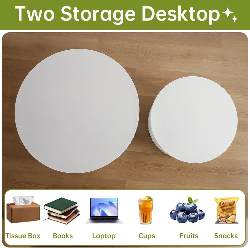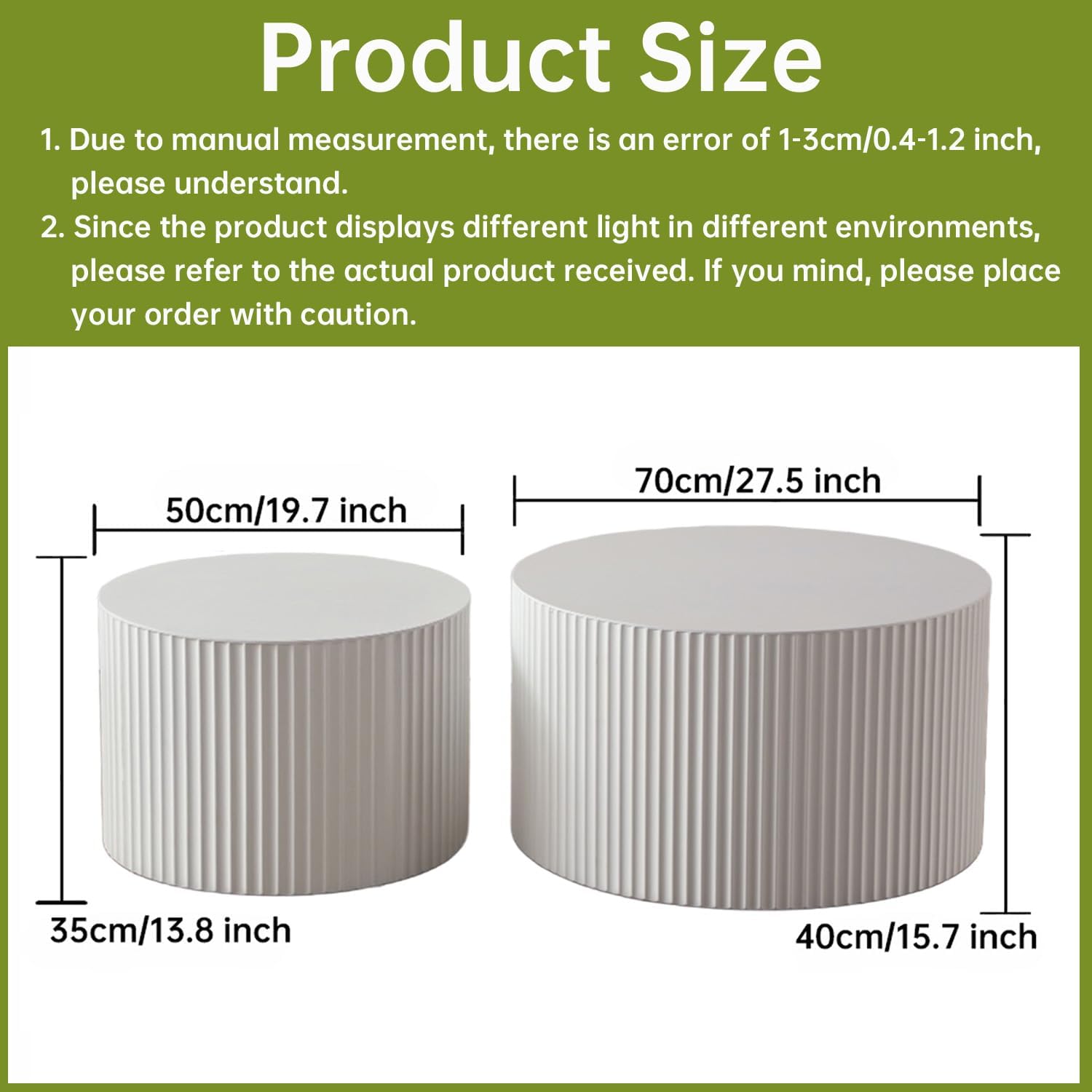 Round Nesting Coffee Table Set of 2 Small Round Coffee Tables for Living Room Modern Fluted Coffee Table Circular End Table Side Table for Small Spaces No Assembly (White B, 27 in)