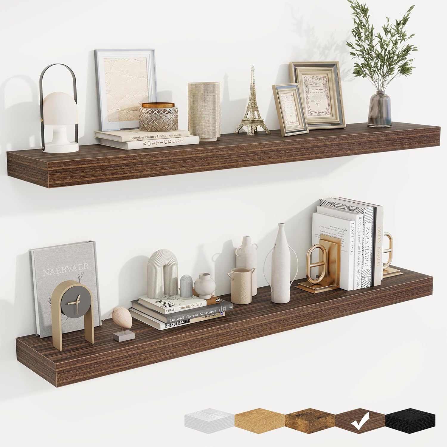 fuqing Floating Shelves for Wall, Bathroom Shelf Wall Mounted for Storage, Shelves with Invisible Bracket for Bedroom, Kitchen, Living Room, Farmhouse Small Book Shelf, 48 Inch Set of 2, Walnut
