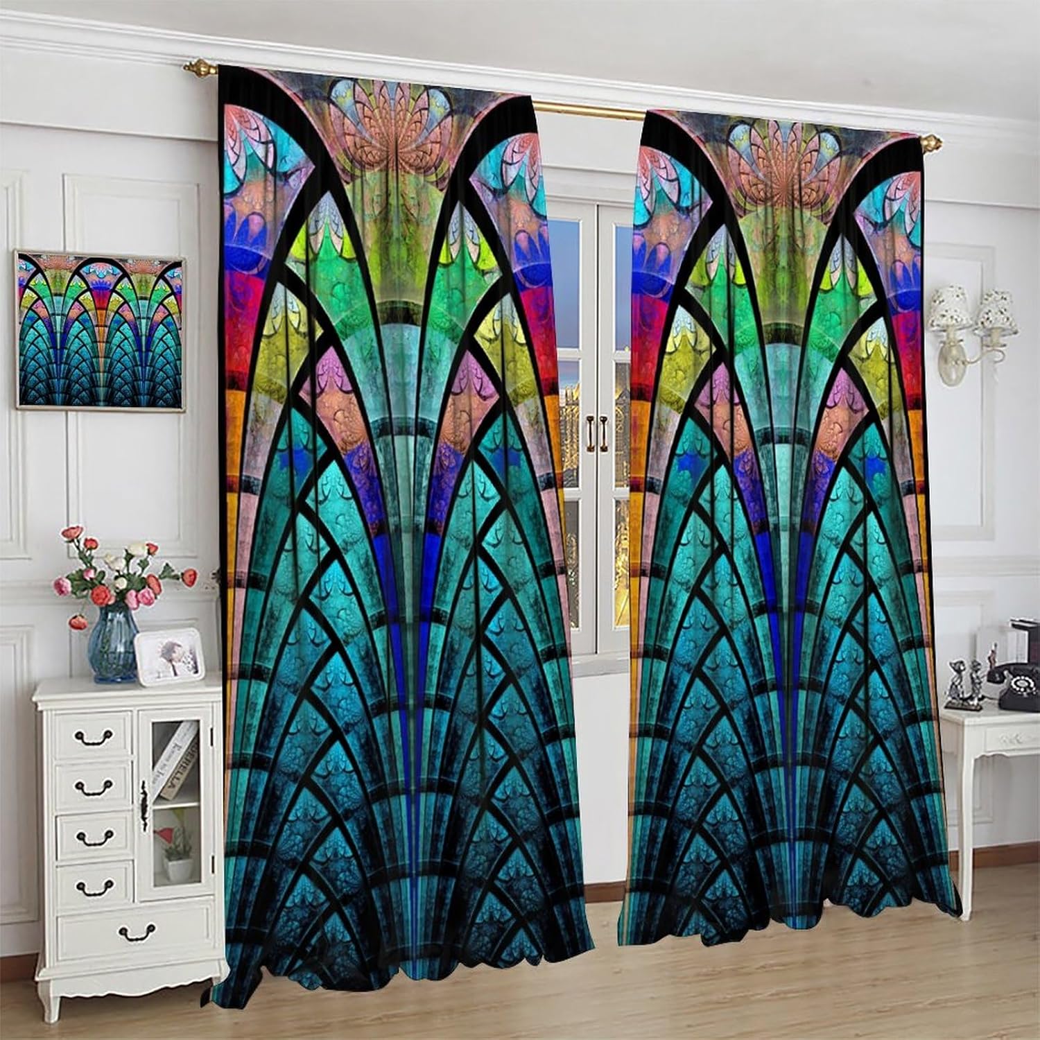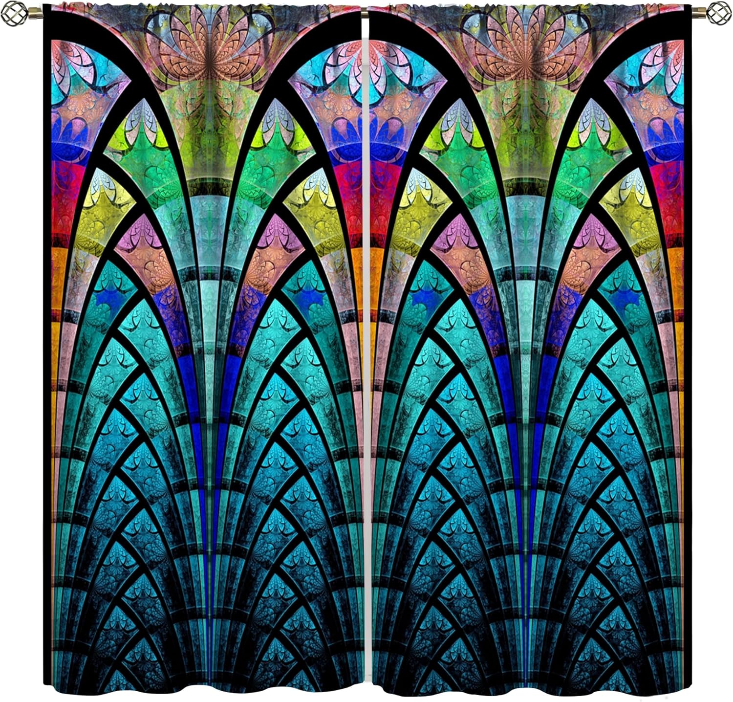 Stained Glass Curtains,Retro Design Style Colorful Abstract Art Home Decor Drapes for Bedroom Living Room Kitchen Window Treatment 2 Panels Set Total Size 63" W X 72" L Inch