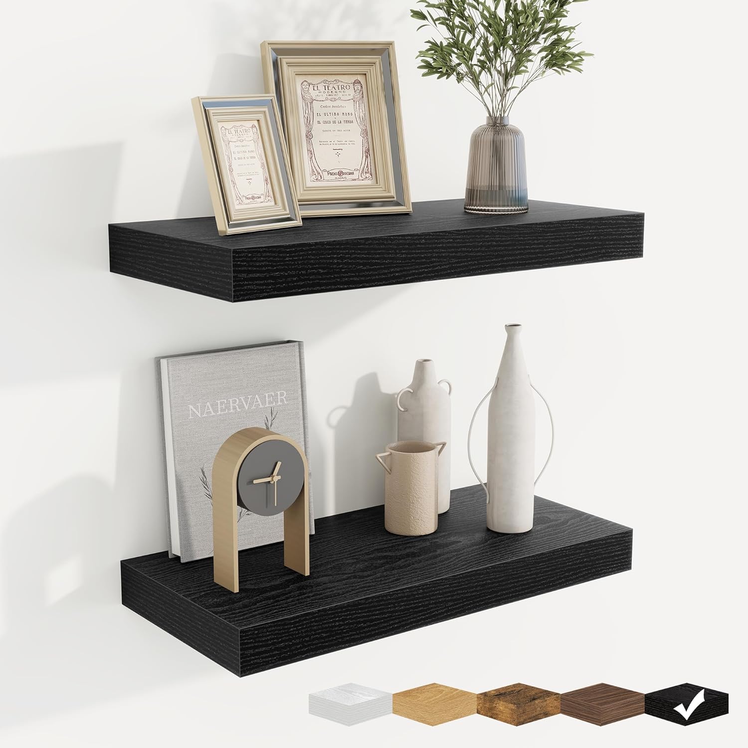 fuqing Floating Shelves for Wall, Bathroom Shelf Wall Mounted for Storage, Shelves with Invisible Bracket for Bedroom, Kitchen, Living Room, Farmhouse Small Book Shelf, 16 Inch Set of 2, Black