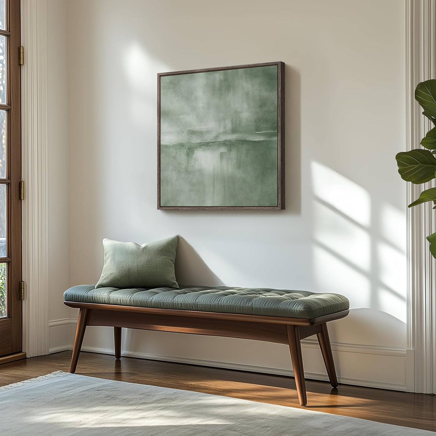 - [Framed Wall Art]: This 24x24-inch framed green abstract canvas wall art features a sleek, rust-resistant walnut wood grain frame designed to complement any decor—from industrial lofts to minimalist apartments. The bold square format commands attention while blending seamlessly