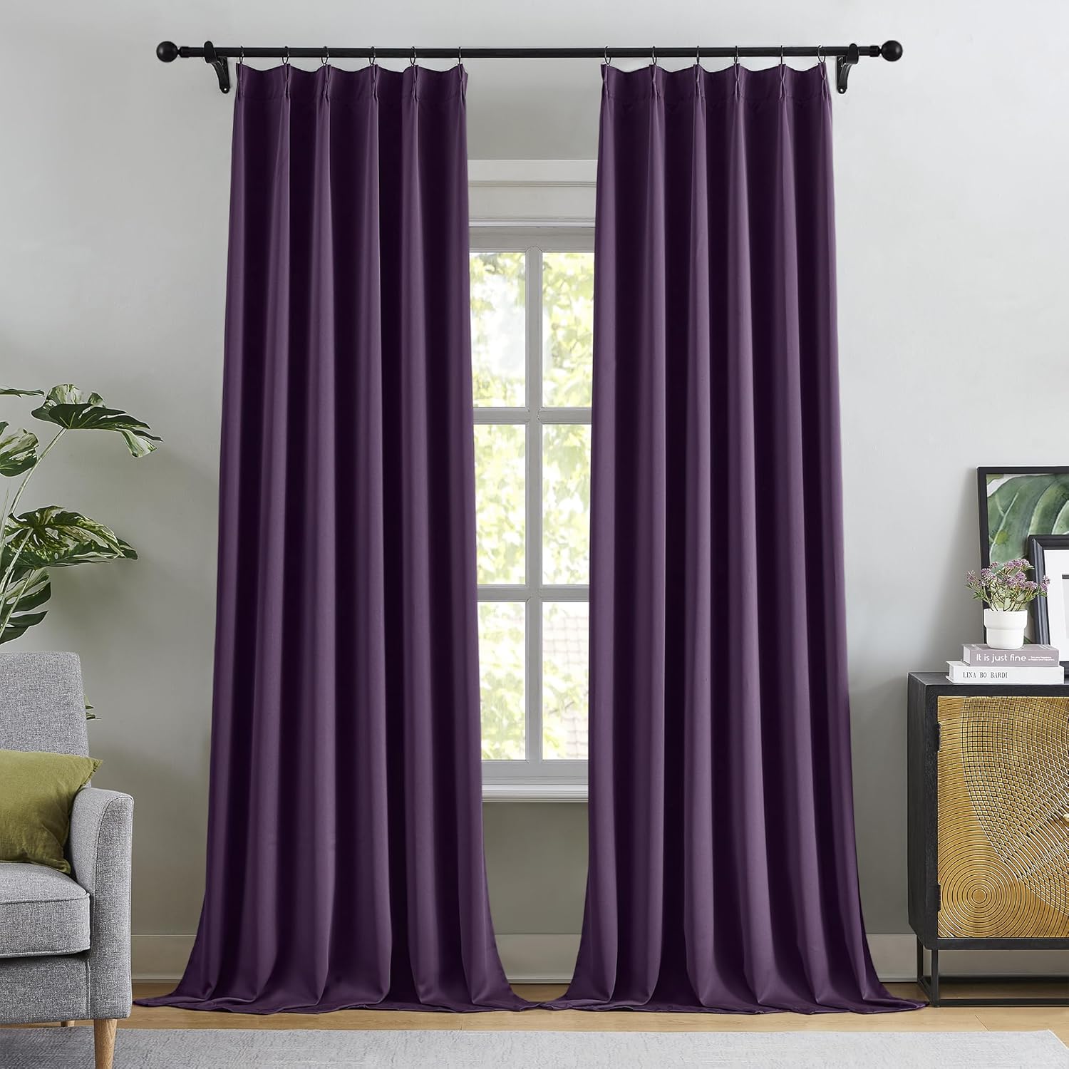 KangBang Purple Curtains Room Darkening Luxury Modern Decor for Living Room, Pinch Pleated Privacy Assured Window Curtains for Locker Room Office with Hooks(Royal Purple,40x96 Inch,2 Panels)
