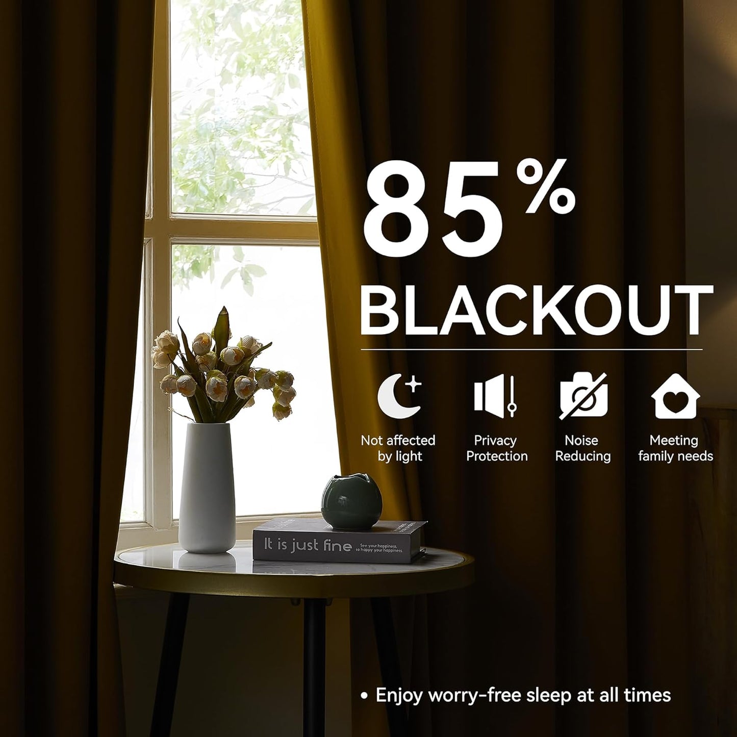 - Room Darkening & Thermal Insulated:Crafted to block out up to 85%–95% of sunlight, these blackout curtains help darken the room, reduce glare, and provide enhanced privacy—ideal for napping, movie nights, or light-sensitive settings. The thermal insulation offers excellent energy saving performance by keeping rooms warmer in winter and cooler in summer. These curtains also provide sound dampening benefits, helping to reduce outside noise for a more peaceful environment.
