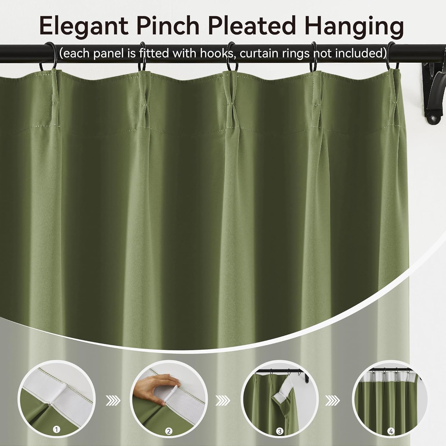 KangBang Sage Green Pinch Pleat Blackout Curtains 96 Inches Long for Living Room, Pinch Pleated Room Darkening Privacy Assured Draperies Memory Shape Panels for Bedroom Kitchen,2 Panels,40Wx96L
