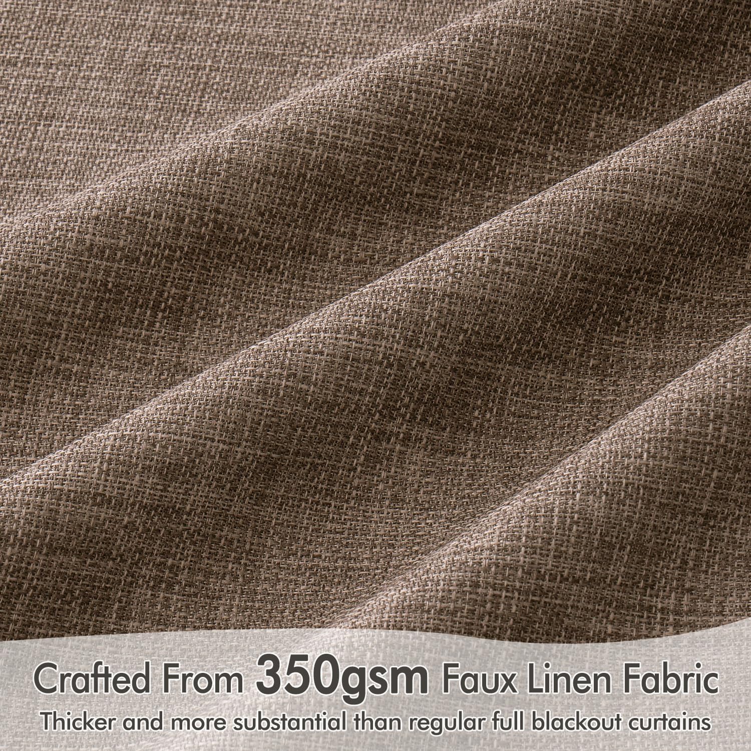- INNOVATED MATERIAL: Crafted from premium thick linen-like fabric with a substantial weight of 350 GSM, these curtains surpass standard blackout options in thickness, luxurious texture, and functionality. The advanced four-layer coating ensures 100% light blocking, insulation against heat and cold, and effective noise reduction. The vintage burlap texture adds timeless charm and highlights their high-quality feel. Energy-efficient and durable, they provide privacy and a cozy atmosphere year-round