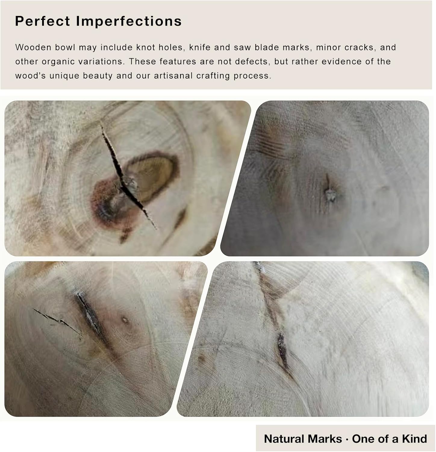 - MATERIAL: Made of willow wood. Compared with paulownia wood, it has a better texture and is heavier in weight. (Please note that the bowls may have knot holes, scratches, knife and saw blade marks, minor cracks and blemishes. These are not defects, but the natural beauty of the wood and the part of the bowl making process.)