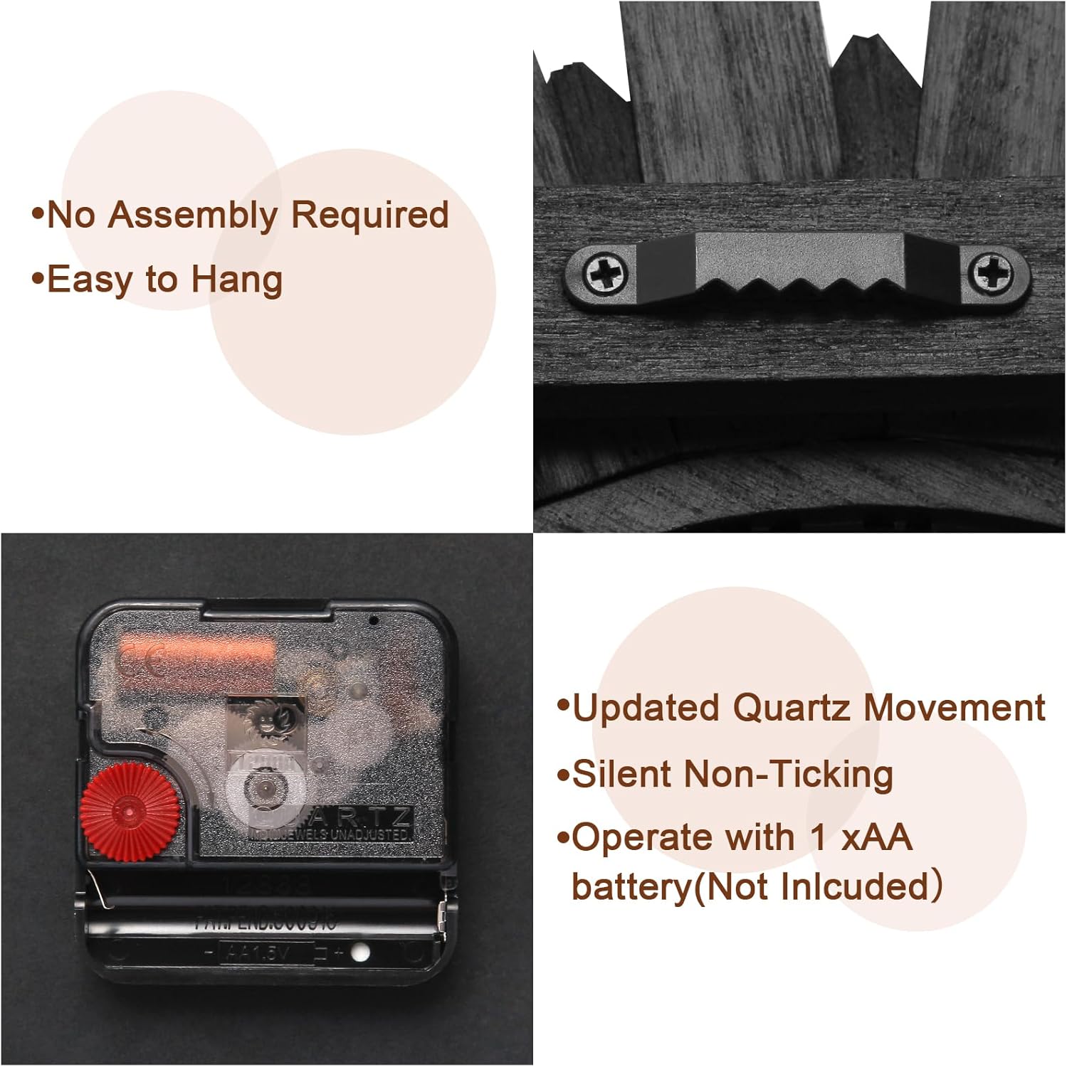 - Solid Wood Decorative Clocks: Made of solid wood with excellent handmade workmanship, this wall clocks battery operated features beautiful wood texture and rustic style, without any cheap plastic exterior or paint
