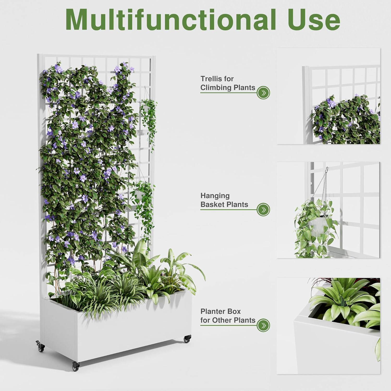 - Space-Efficient Trellis Design: The integrated trellis allows you to grow climbing flowers and vegetables, maximizing vertical space and adding charm to small gardens.