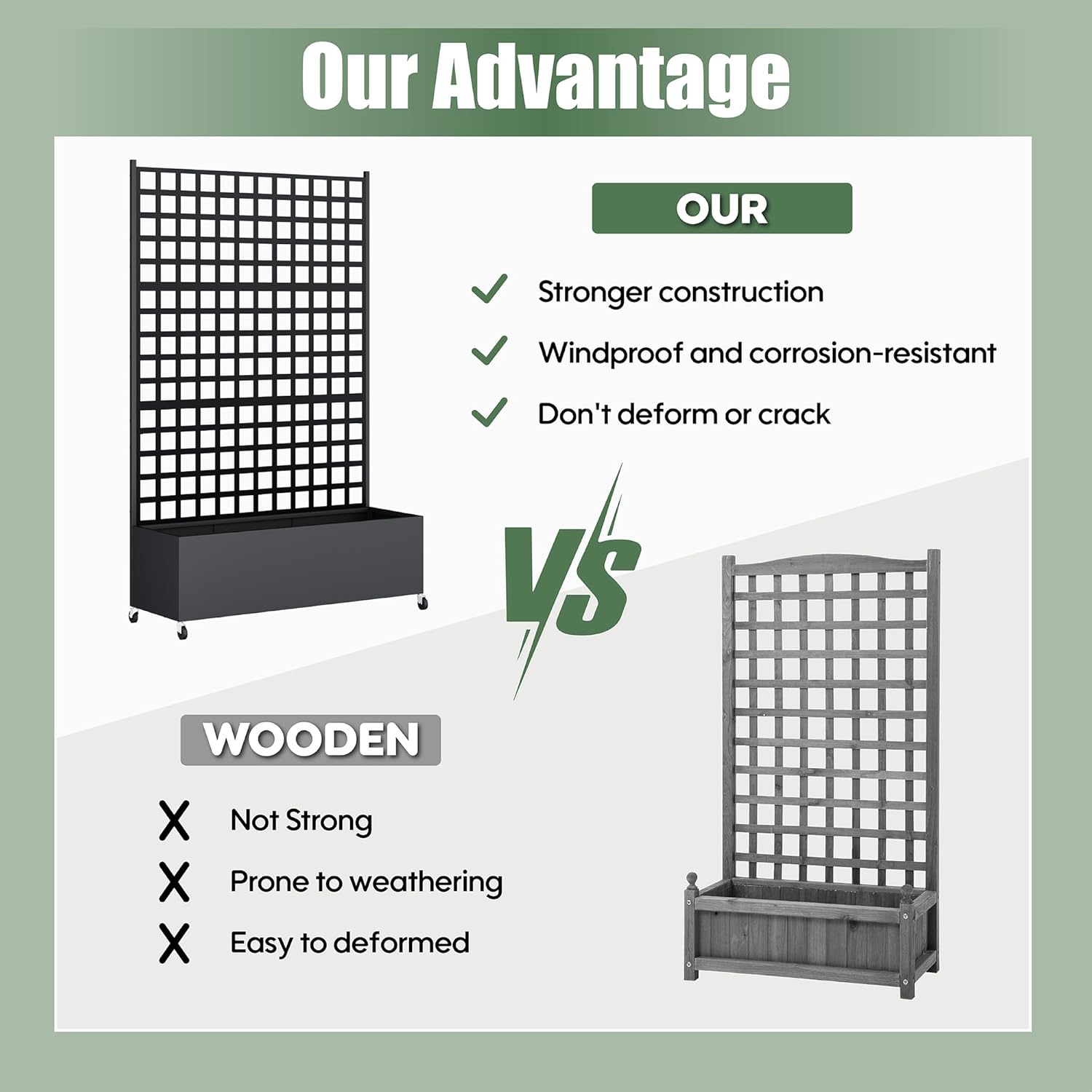 - Versatile Design--This metal planter with trellis serves triple purposes as an elevated garden bed for flowers/plants, a sturdy trellis for climbing flora, or a stylish privacy screen to enhance outdoor living spaces. Its adaptable structure makes it the ultimate gardening solution for diverse needs.