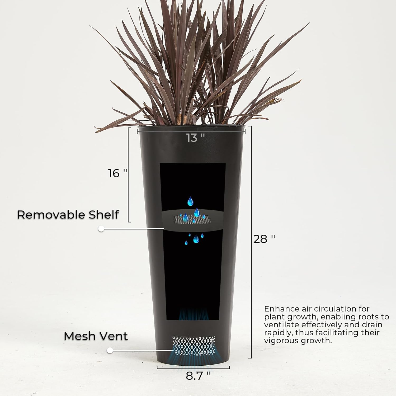 - Heavy-Duty Steel Planters for Outdoor Plants: 2-pack 28"H steel planters with 13" top diameter—built for decade-long outdoor use. High-quality steel resists rust, UV damage, and cracking in cold climates.