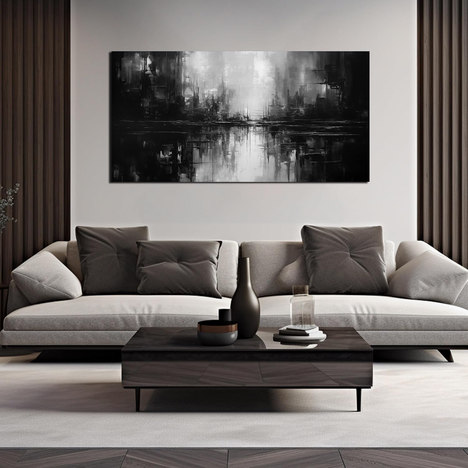 TYTAUPT Abstract Canvas Wall Art For Living Room Black and White Wall Art For Office Bedroom Wall Decor 24 x 48 Inch