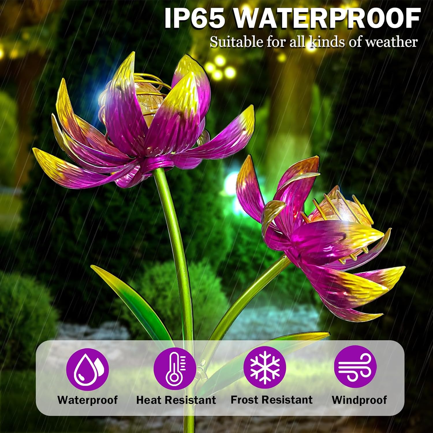 - Elegant Twin Flower Design: Inspired by nature, this solar garden decor features a stunning Twin flower design with vibrant colors. Crafted from durable metal and coated with a rust-resistant finish, it adds a touch of charm to your yard decor while standing up to harsh weather.