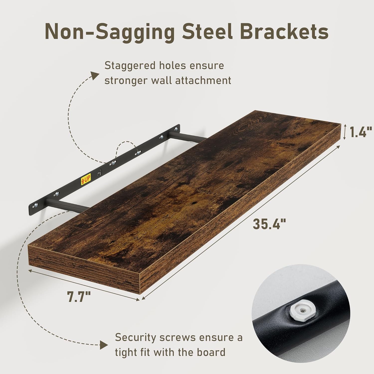 Fun Memories 36 x 8 Inch Floating Shelves for Wall, Farmhouse Bathroom Shelves Set of 2, Wood Wall Shelves 36 Inch Long, 36 x 8 x 1.4 Inch, Rustic Brown
