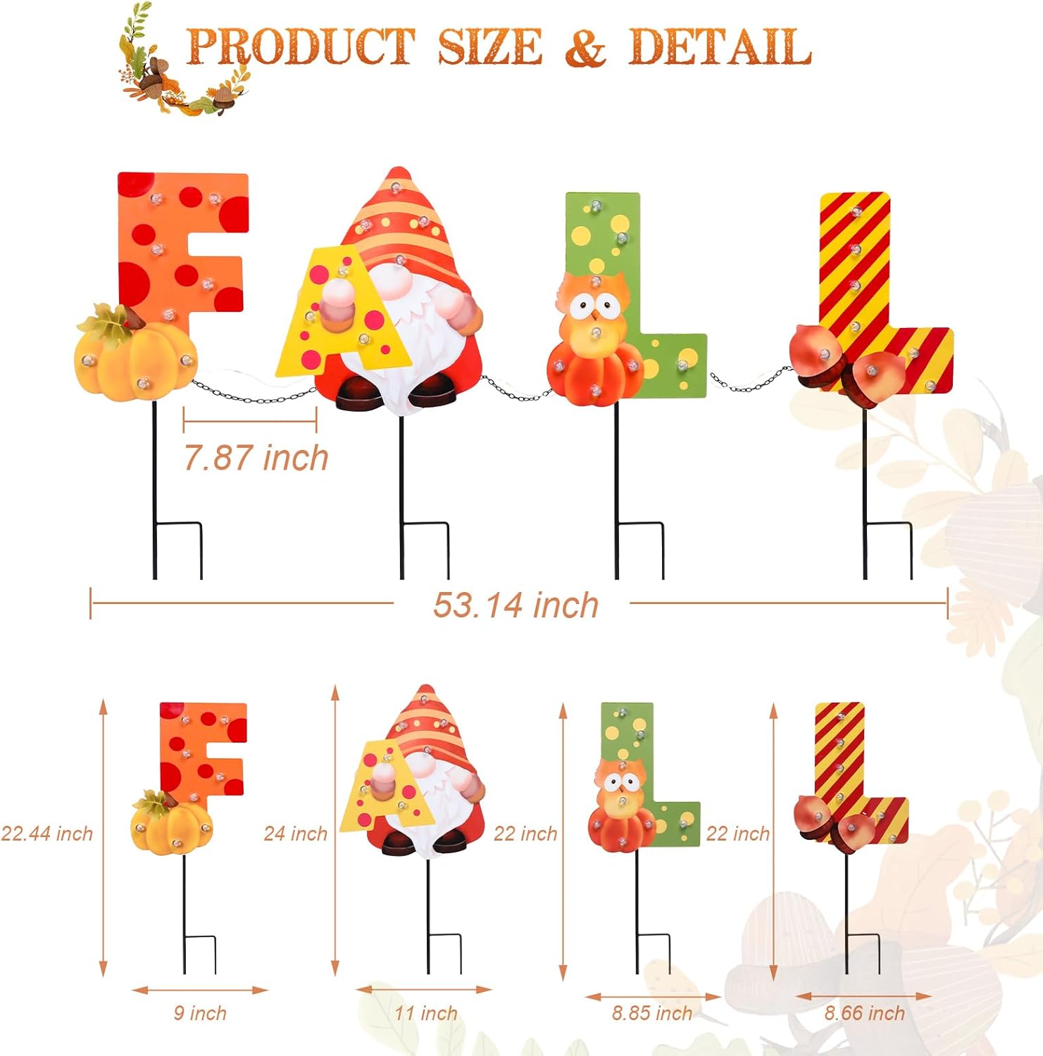 - {4 Pack Lighted Fall Yard Stakes} Our yard signs is an indispensable decoration for autumn, designed with “FALL” shape, battery powered yard signs is gorgeous both day and night, also with 6 hours timer, making your garden full of atmosphere both during the day and at night. Very diverse and colorful, making your autumn garden even more vibrant