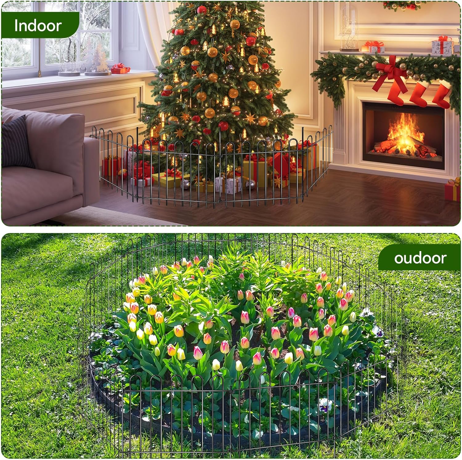 - Garden Fence AniMultipurpose Fence: This fencing for yard can be used as a small garden fence or animal barrier fence by inserting metal stakes into the ground to prevent small animals from escaping or entering and destroying your garden. The classic arched fence shape and simple modern garden decoration style are very suitable for plant flower beds, vegetable gardens, substations, ponds, lawns, adding a sense of fashion while avoiding accidents.mal Barrier