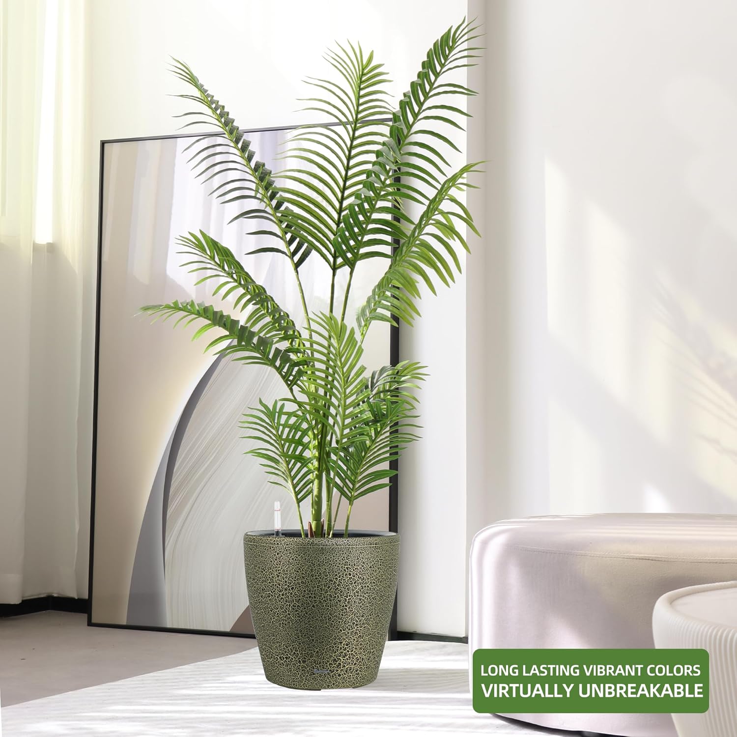 Dexceder 13x12 Self Watering Planter with Wheels Indoor Outdoor, Inner Pot Design, Thickened Large Floor Standing Flower Plant Pot with Water Level Indicator (Black Gold Crackle)