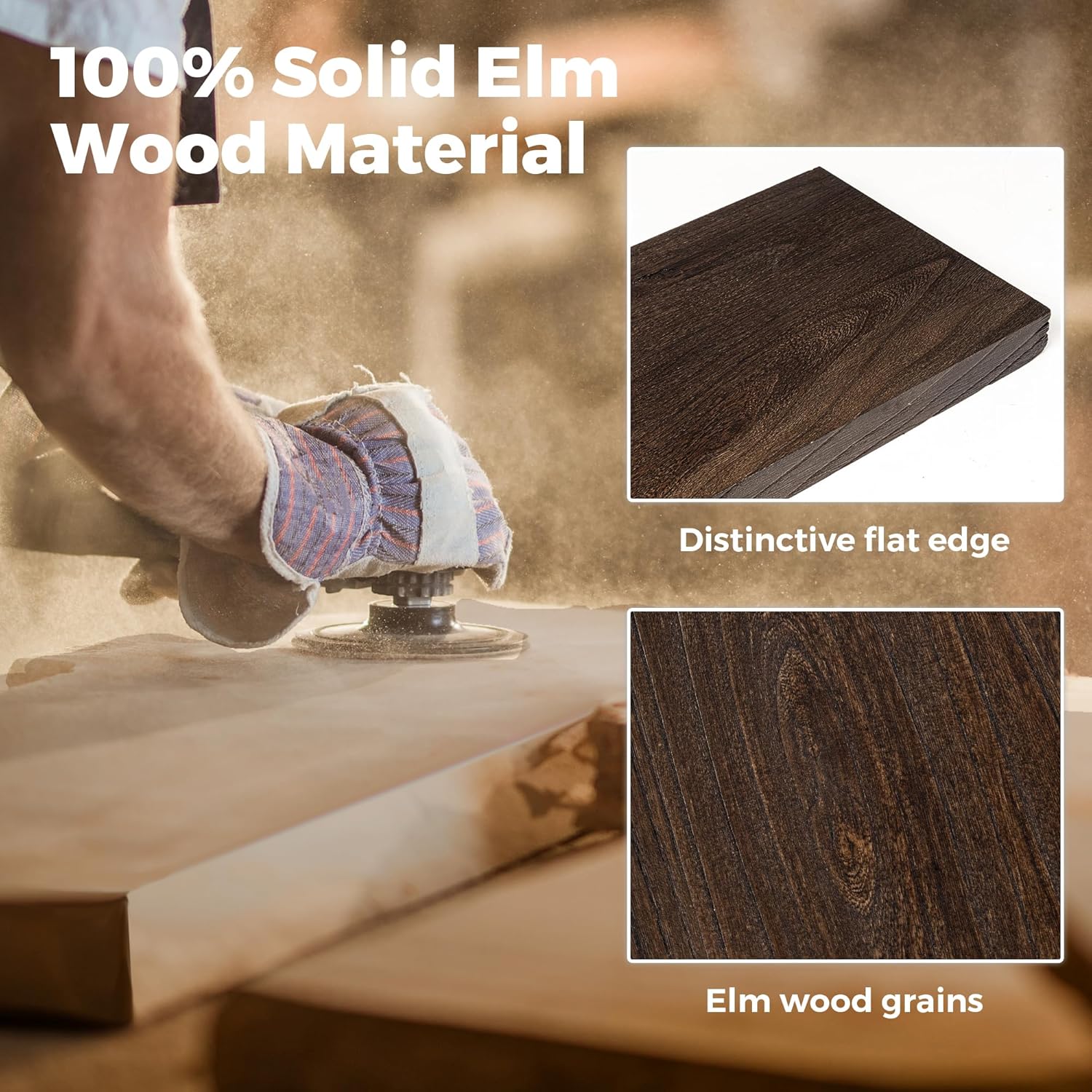 - RECLAIMED ELM WOOD SHELVES: Our wooden floating shelves are handcrafted from solid reclaimed elm wood, each floating shelf showcases the natural beauty of wood knots, grain, and texture. The reclaimed elm wood features knots, cracks and imperfections that tell a story of time and use. These shelves exude a rustic and aged appearance, adding charm and character to your home decor
